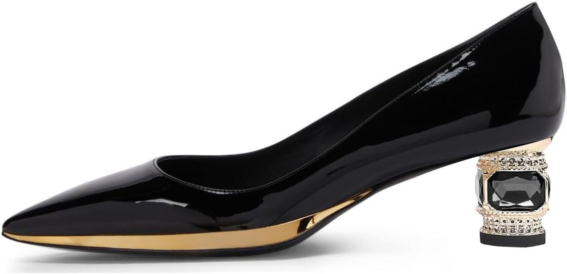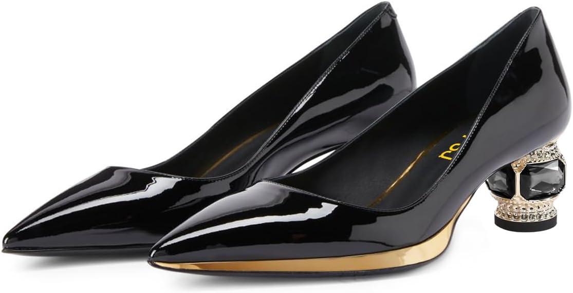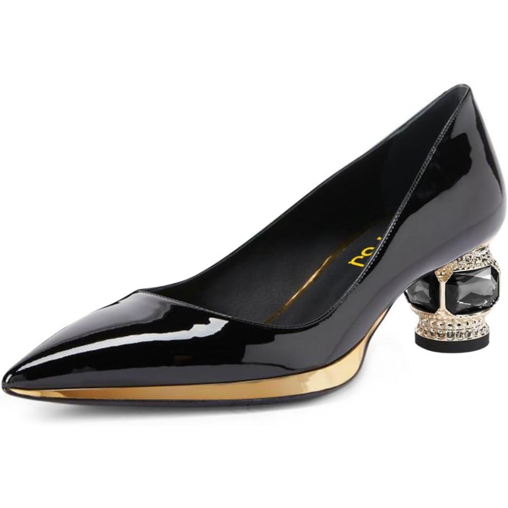 Get up to 70% off on FSJ Women Bridal Pointed Toe Chunky Block Low Heel Crystal Pumps Gold Trim Slip on Comfort Wedding Dress Shoes Size 4-16 US(Black-gold Trim) styles during our end-of-season clearance event.