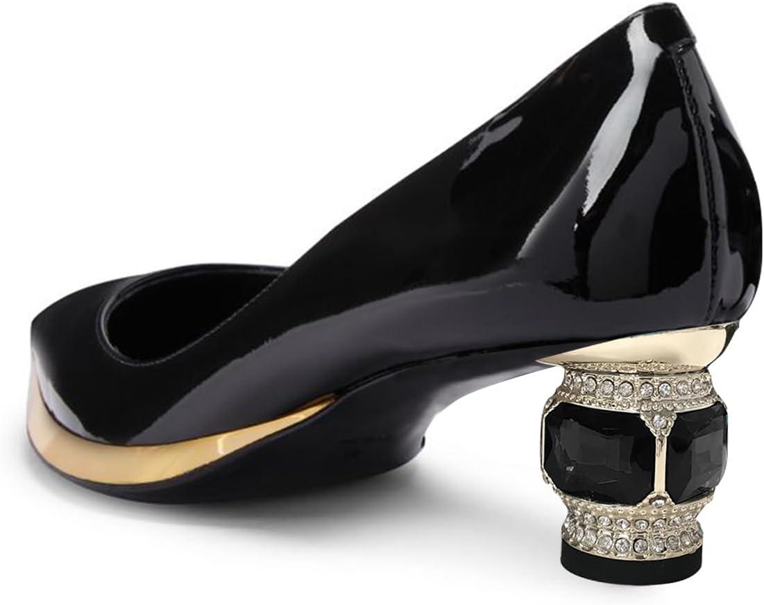 imageFSJ Women Bridal Pointed Toe Chunky Block Low Heel Crystal Pumps Gold Trim Slip on Comfort Wedding Dress Shoes Size 416 USBlackgold Trim