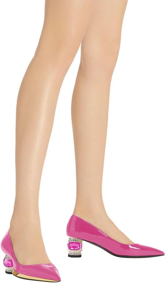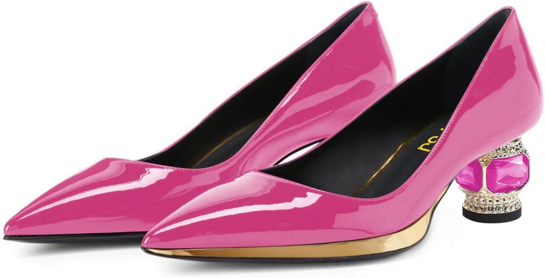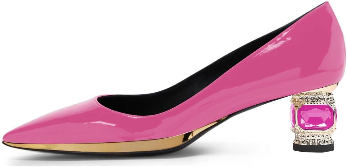 Save big on FSJ Women Bridal Pointed Toe Chunky Block Low Heel Crystal Pumps Gold Trim Slip on Comfort Wedding Dress Shoes Size 4-16 US(Pink) during our summer blowout sale. Limited quantities available.