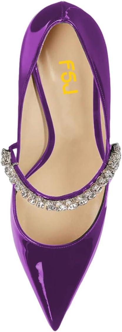 Be the first to review “FSJ Women Charming Rhinestone Flared Low Heel Pumps Closed Pointed Toe One Strap Slip On Comfortable Work Office Wedding Dance Dress Shoes Size 4-16 US(Purple)”