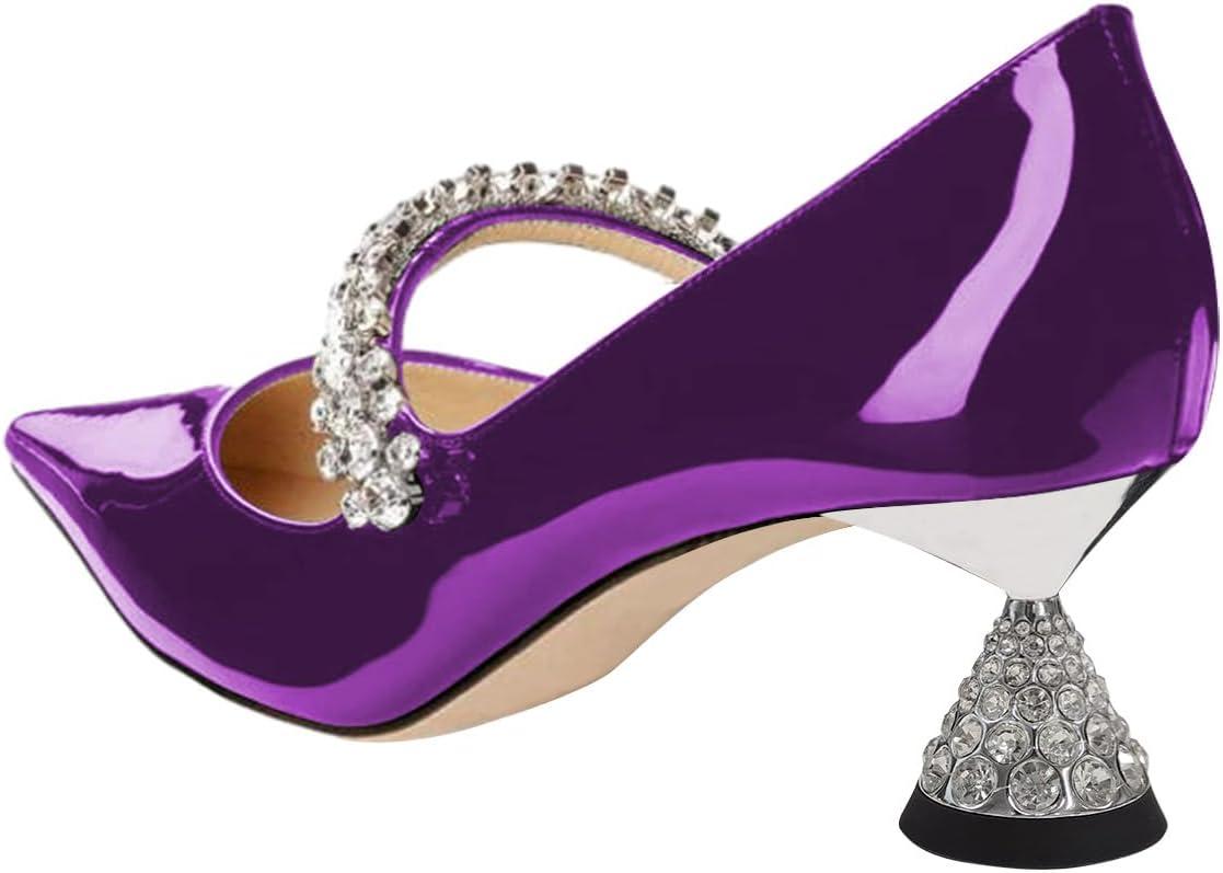 imageFSJ Women Charming Rhinestone Flared Low Heel Pumps Closed Pointed Toe One Strap Slip On Comfortable Work Office Wedding Dance Dress Shoes Size 416 USPurple