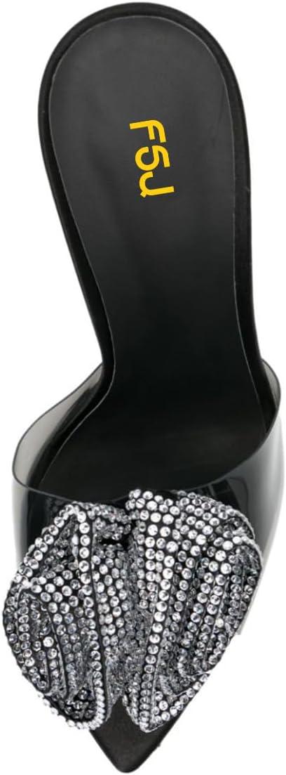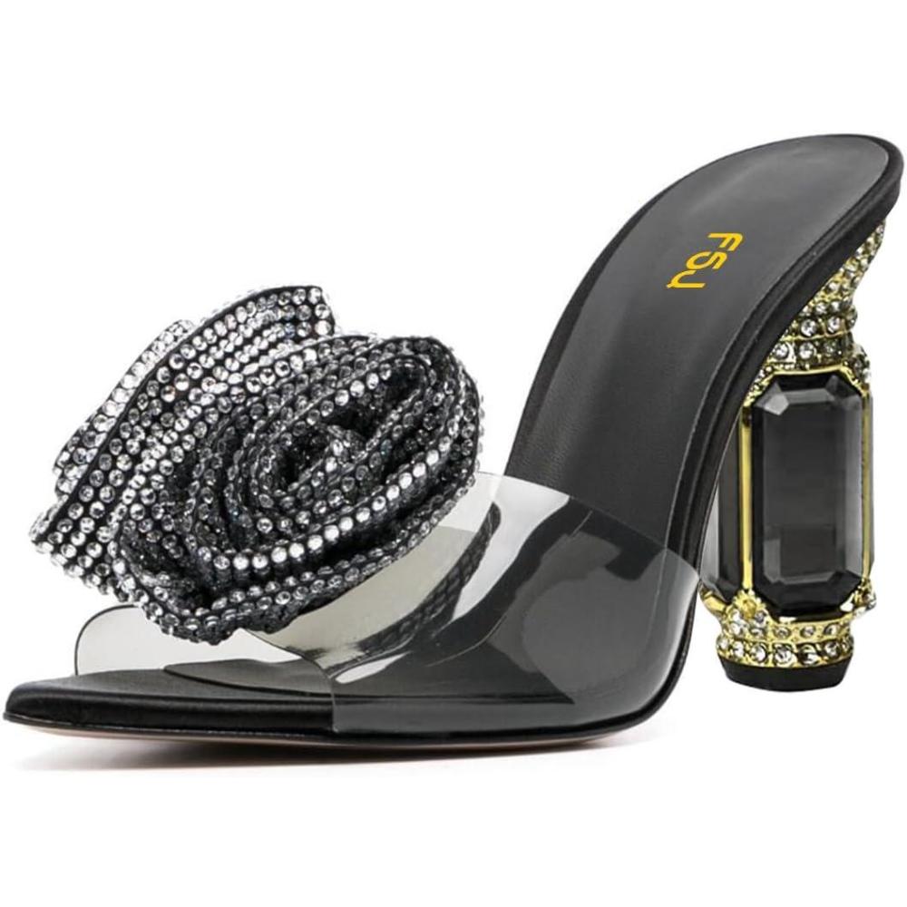 imageFSJ Women Charming Rose Floral Heel Sandals Clear PVC Band Crystal Chunky Heel Sexy Pointed Peep Toe Slip On Mules Party Prom Wedding Shoes Size 416 USBlack Rhinestone