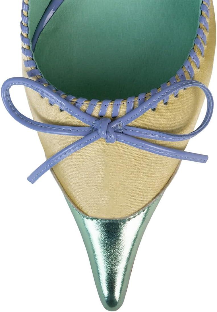 imageFSJ Women Chic Bow Pumps Cap Toe Stiletto Slip On Sexy Color Matching Pointed Toe High Heels Fashion Dress Shoes Size 416 USYellow Green