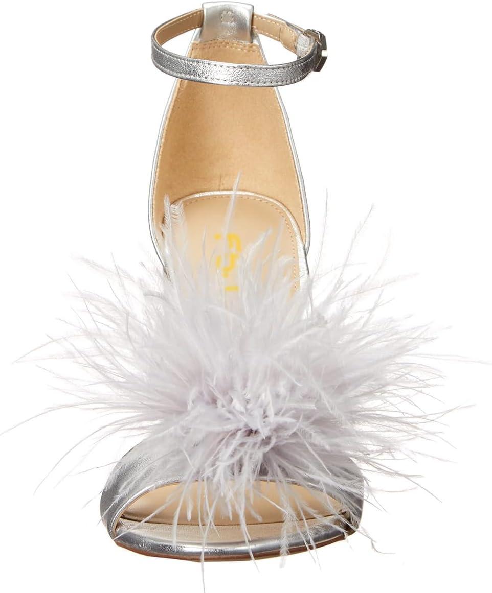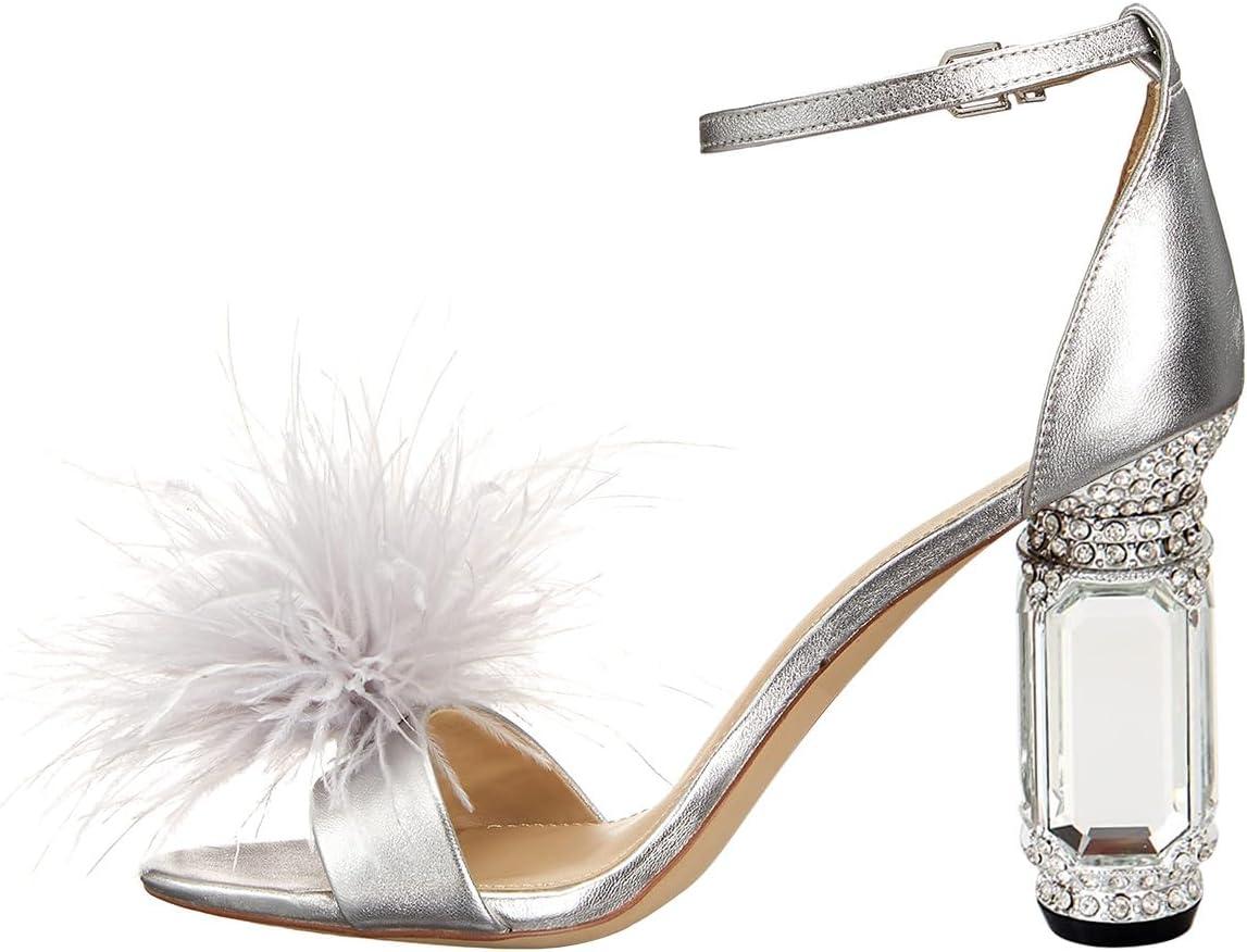 imageFSJ Women Chic Feather Open Toe Ankle Strap Sandals Crystal Block High Heel Furry Wedding Evening Prom Shoes Size 416 USSilver