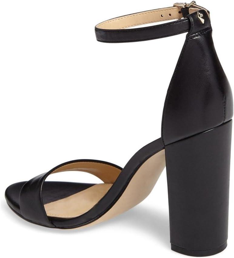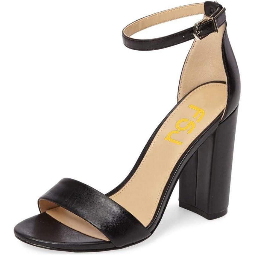 FSJ Women Classic Chunky High Heel Sandals Open Toe Ankle Strap Single Band Dress Wedding Party Sexy Shoes Size 4-15 US(Black)