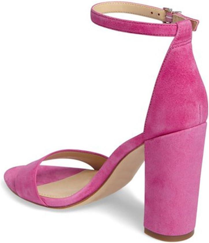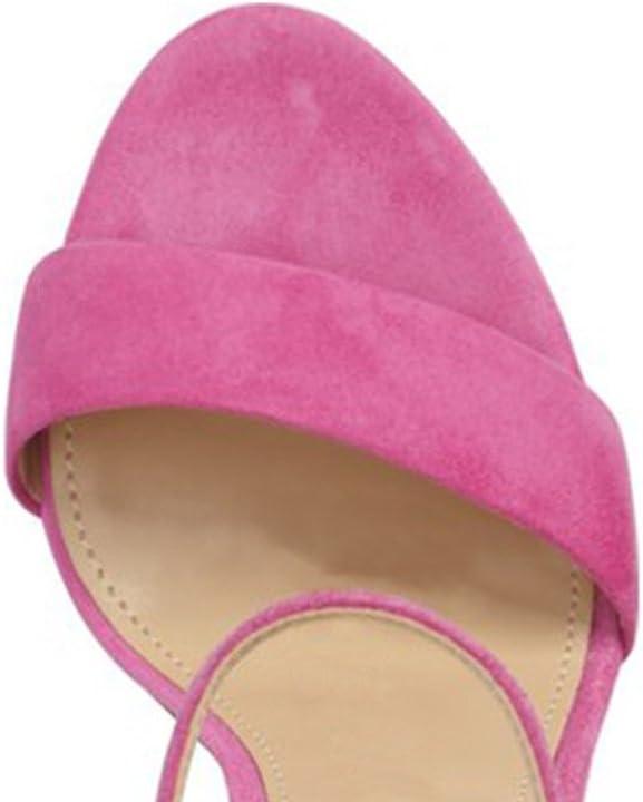 FSJ Women Classic Chunky High Heel Sandals Open Toe Ankle Strap Single Band Dress Wedding Party Sexy Shoes Size 4-15 US(Fuchsia Velvet)