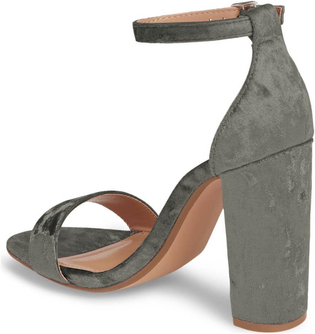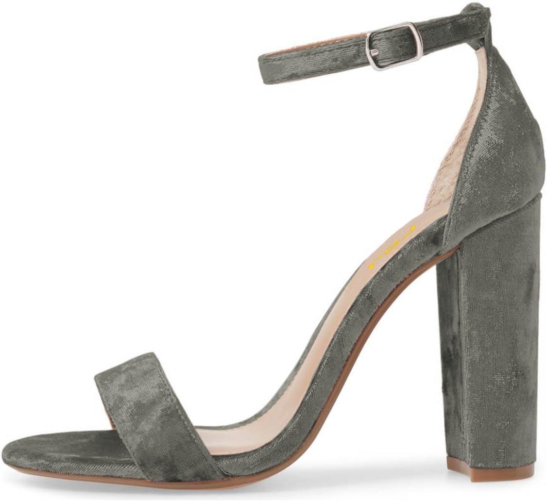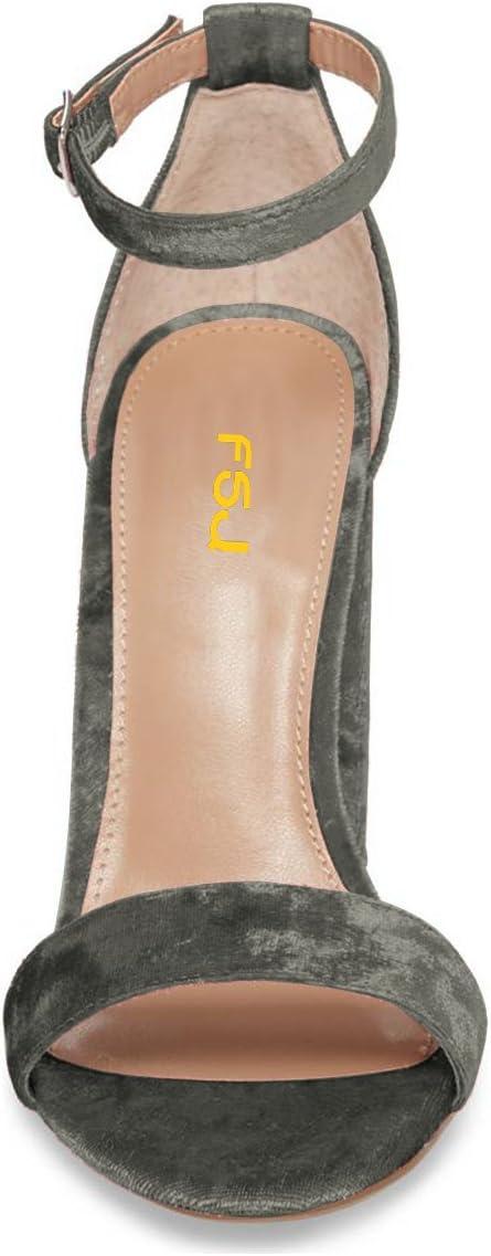 FSJ Women Classic Chunky High Heel Sandals Open Toe Ankle Strap Single Band Dress Wedding Party Sexy Shoes Size 4-15 US(Grey Velvet)