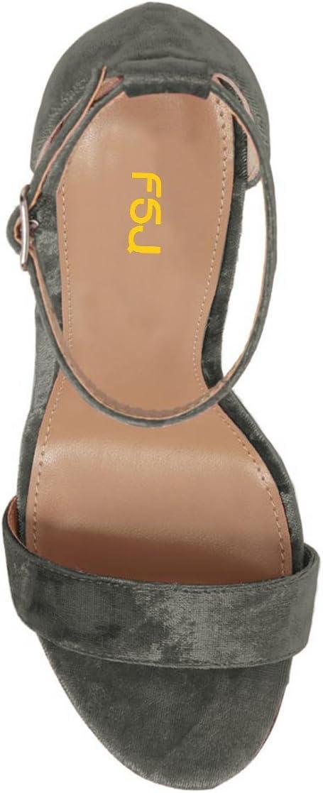 imageFSJ Women Classic Chunky High Heel Sandals Open Toe Ankle Strap Single Band Dress Wedding Party Sexy Shoes Size 415 USGrey Velvet