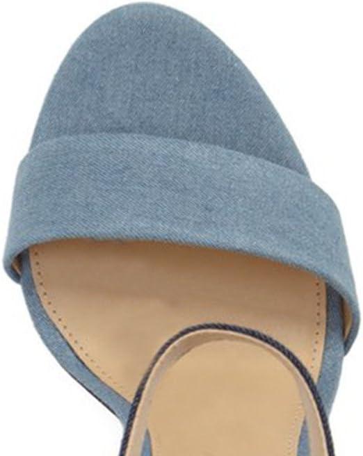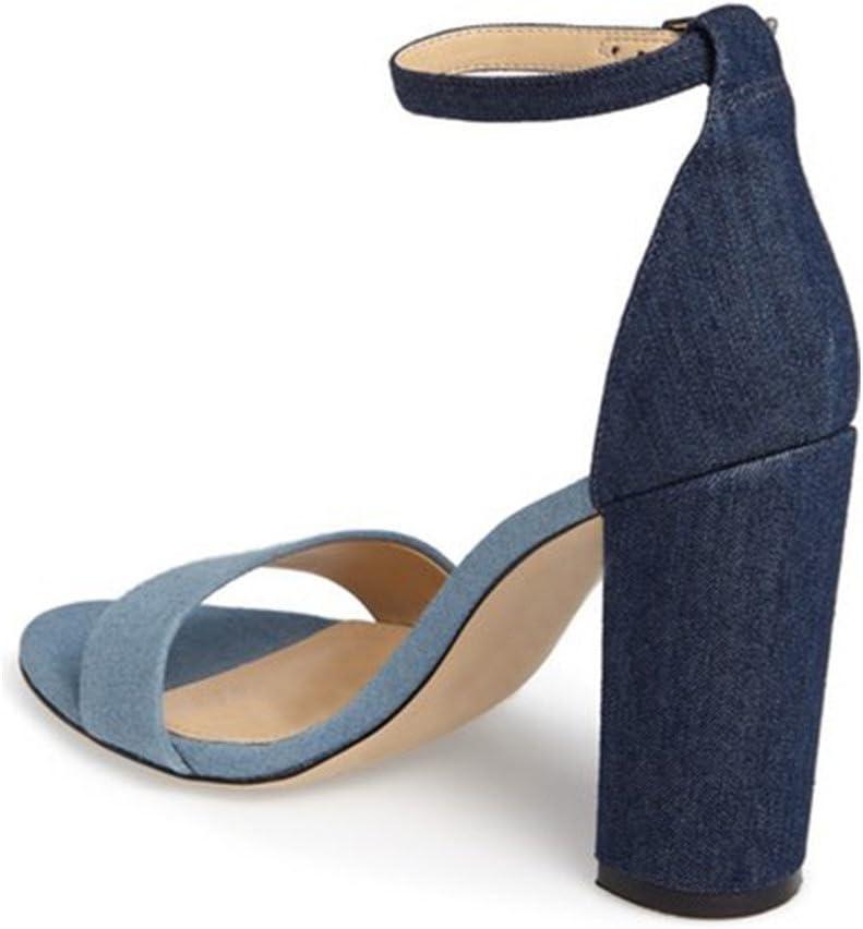 imageFSJ Women Classic Chunky High Heel Sandals Open Toe Ankle Strap Single Band Dress Wedding Party Sexy Shoes Size 415 USLight Blue