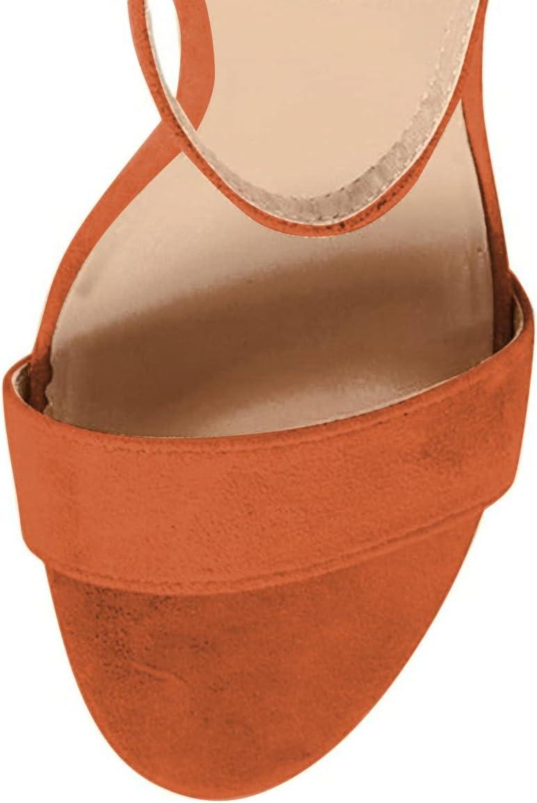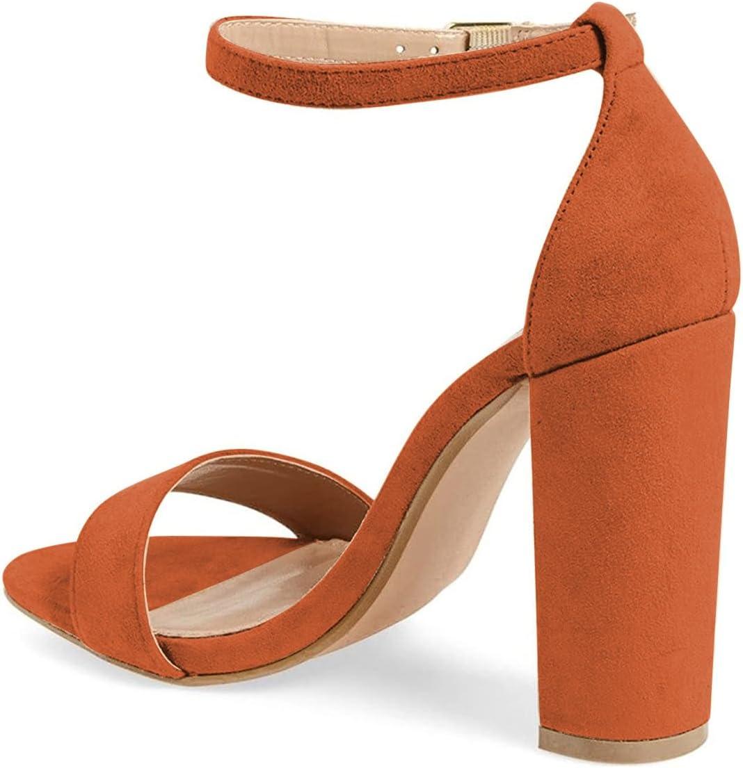 FSJ Women Classic Chunky High Heel Sandals Open Toe Ankle Strap Single Band Dress Wedding Party Sexy Shoes Size 4-15 US(Orange)