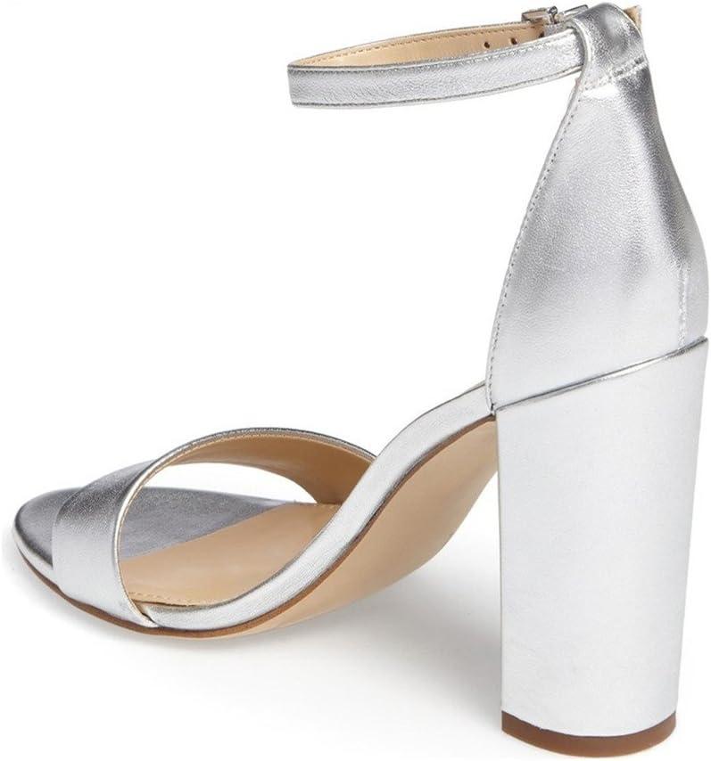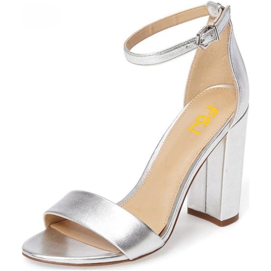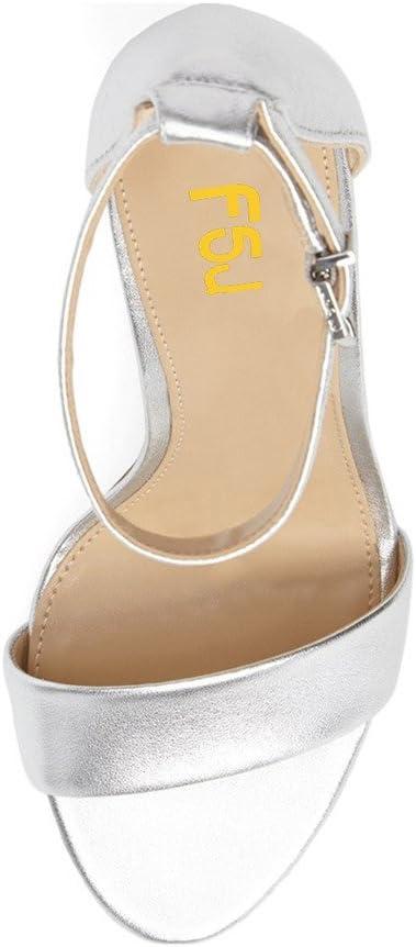 FSJ Women Classic Chunky High Heel Sandals Open Toe Ankle Strap Single Band Dress Wedding Party Sexy Shoes Size 4-15 US(Silver)