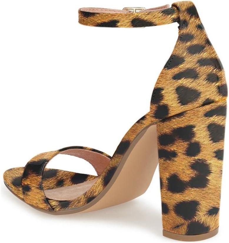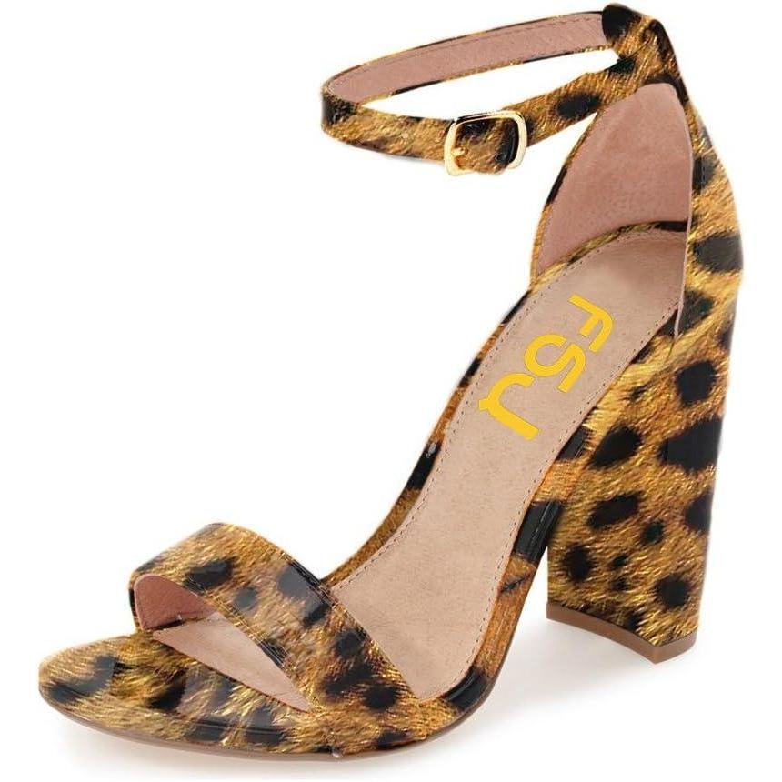 imageFSJ Women Classic Chunky High Heel Sandals Open Toe Ankle Strap Single Band Dress Wedding Party Sexy Shoes Size 415 USTanleopard