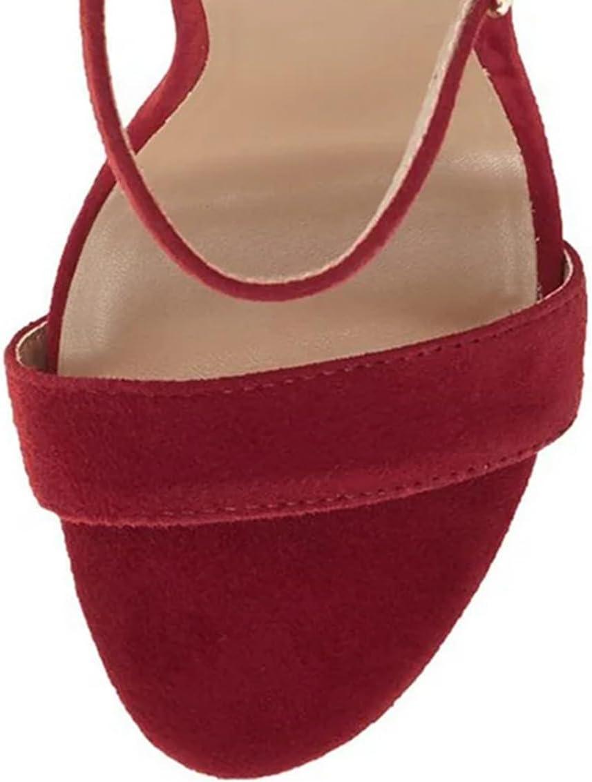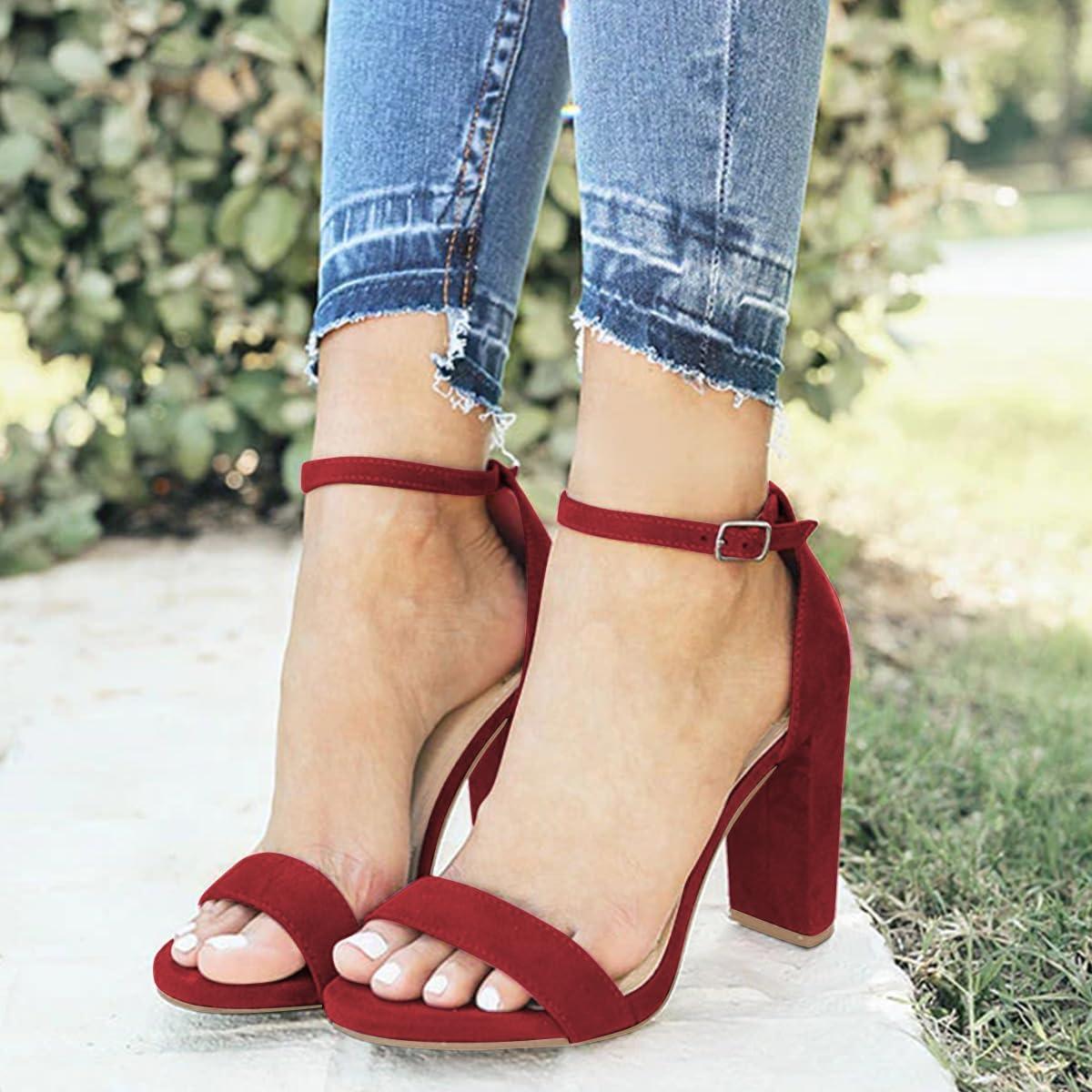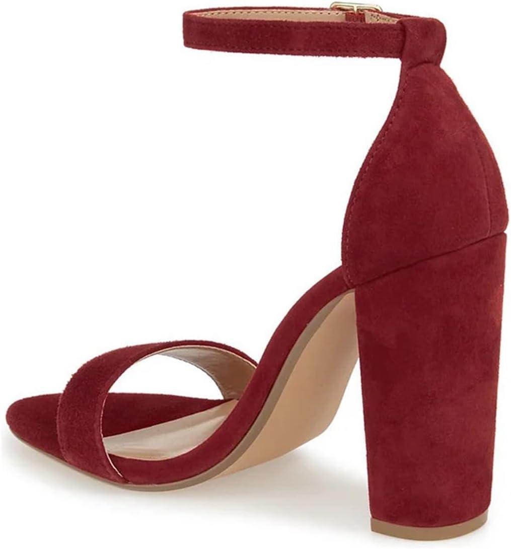 imageFSJ Women Classic Chunky High Heel Sandals Open Toe Ankle Strap Single Band Dress Wedding Party Sexy Shoes Size 415 USWine Red