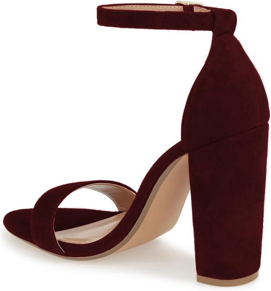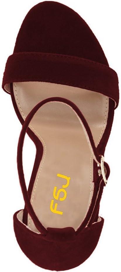 FSJ Women Classic Chunky High Heel Sandals Open Toe Ankle Strap Single Band Dress Wedding Party Sexy Shoes Size 4-15 US(Wine Red)