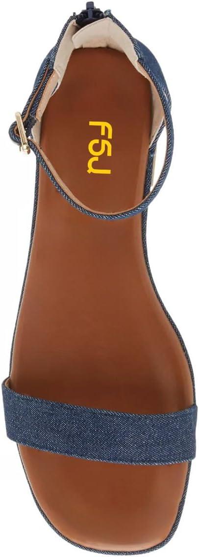 imageFSJ Women Classic Open Toe Ankle Strap Flat Sandals One Band Buckle Back Zipper Comfort Summer Dressy Shoes Size 416 USDark Blue Denim