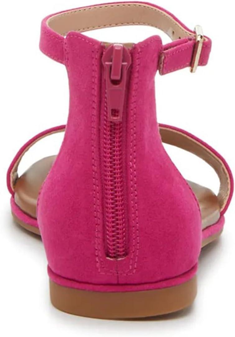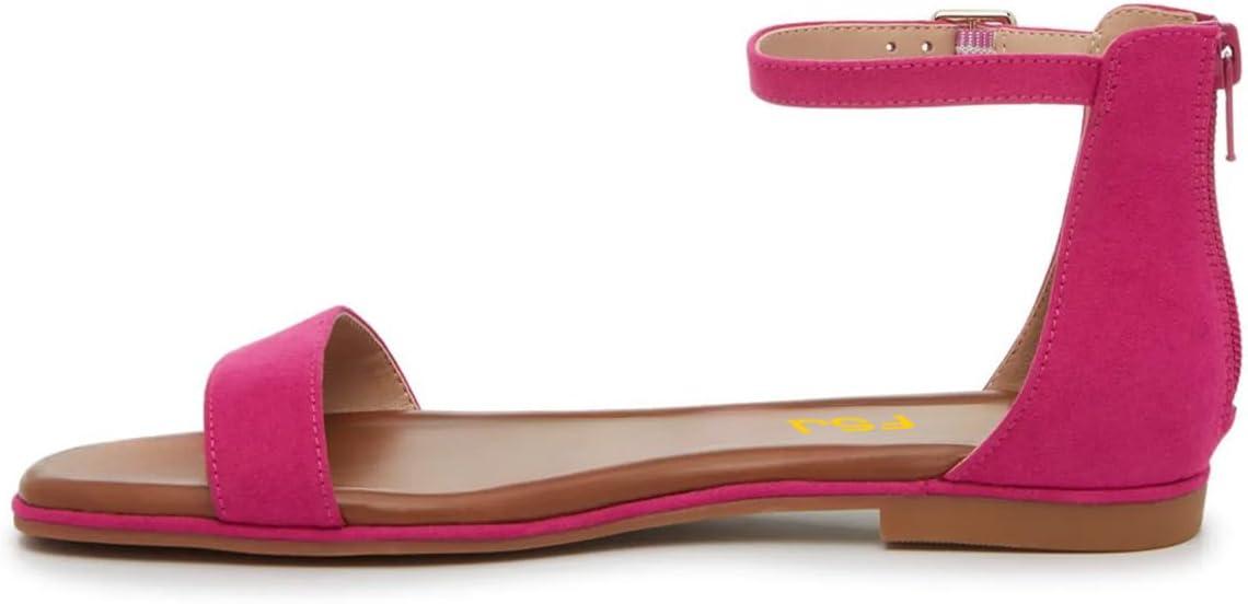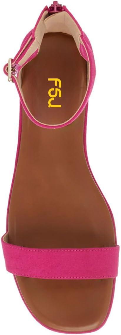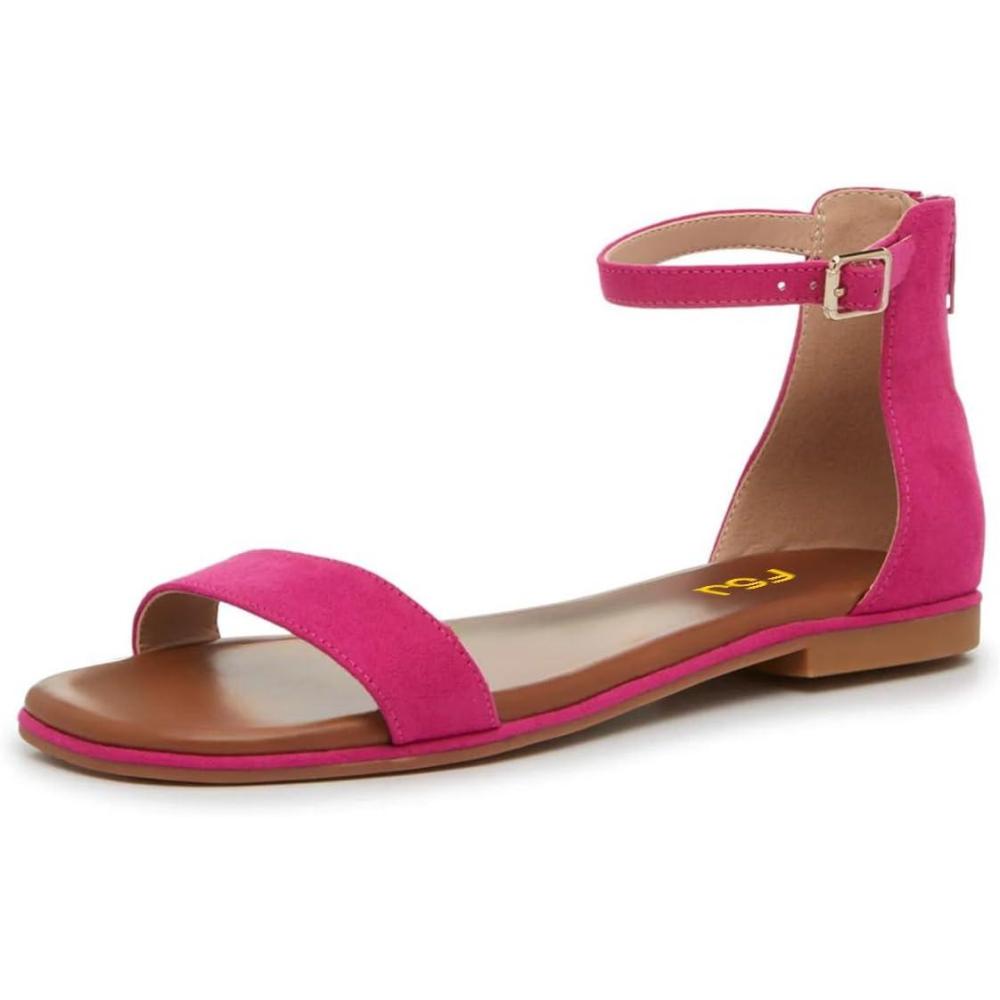imageFSJ Women Classic Open Toe Ankle Strap Flat Sandals One Band Buckle Back Zipper Comfort Summer Dressy Shoes Size 416 USHot Pink