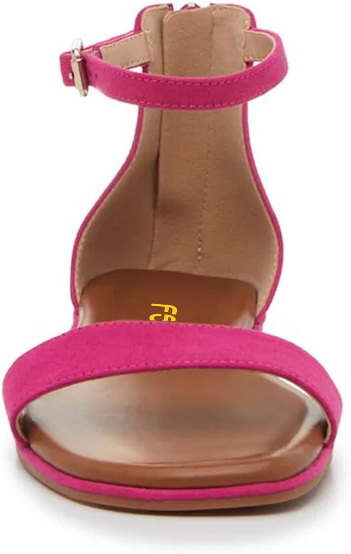 FSJ Women Classic Open Toe Ankle Strap Flat Sandals One Band Buckle Back Zipper Comfort Summer Dressy Shoes Size 4-16 US(Hot Pink)