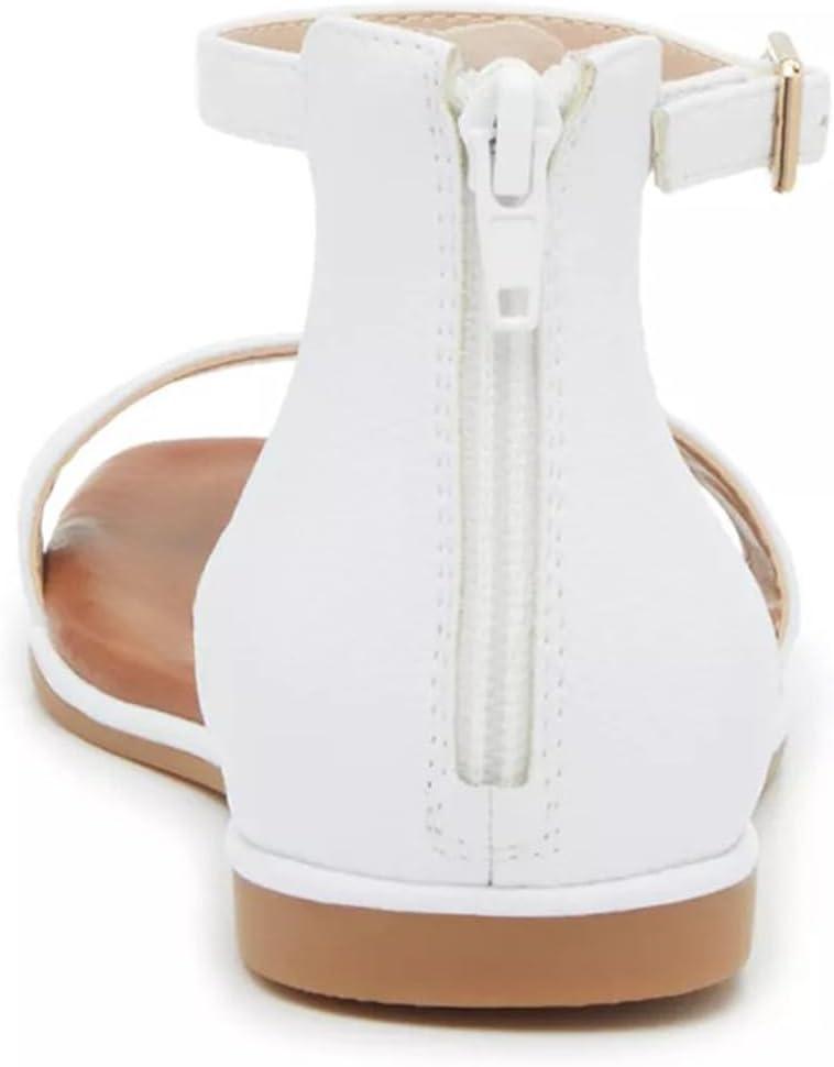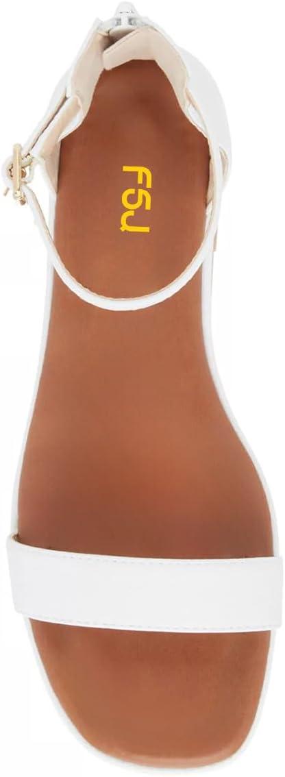 imageFSJ Women Classic Open Toe Ankle Strap Flat Sandals One Band Buckle Back Zipper Comfort Summer Dressy Shoes Size 416 USWhite