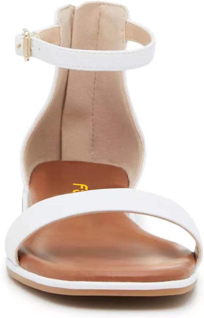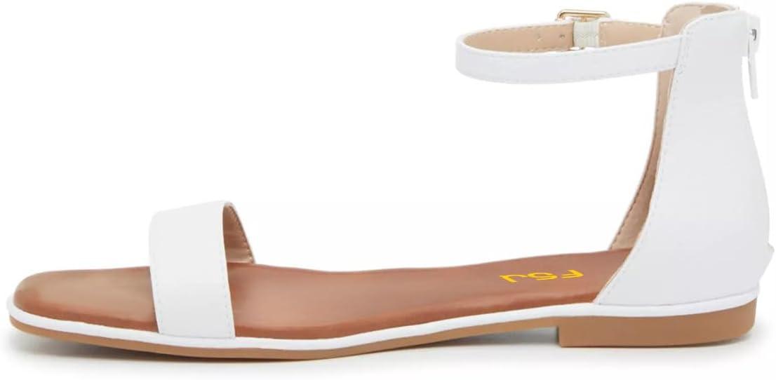 FSJ Women Classic Open Toe Ankle Strap Flat Sandals One Band Buckle Back Zipper Comfort Summer Dressy Shoes Size 4-16 US(White)