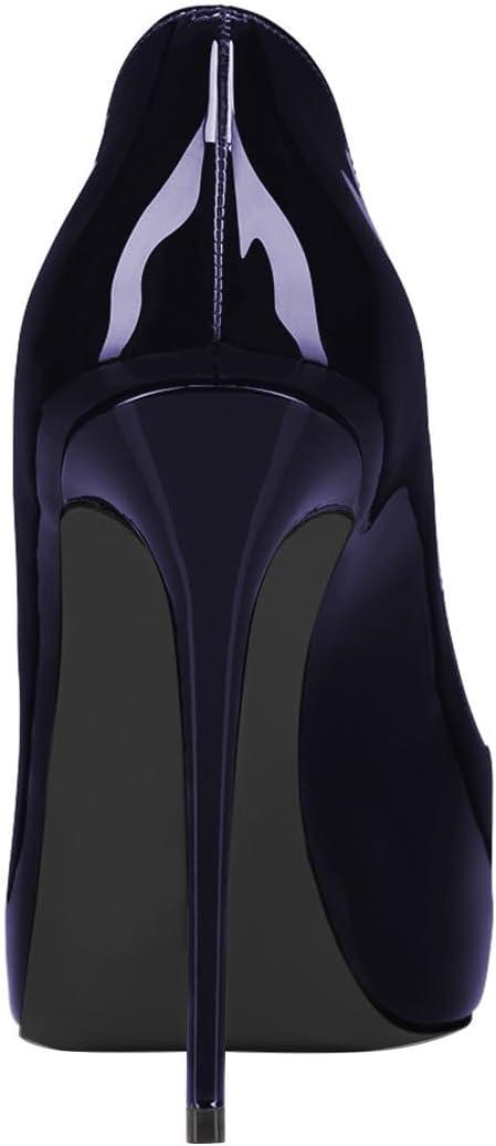FSJ Women Classic Peep Toe Platform Pumps Sexy Stiletto High Heels Slip On Patent Leather Basic Pumps Wedding Party Dress Shoes Size 4-16 US(Blue)