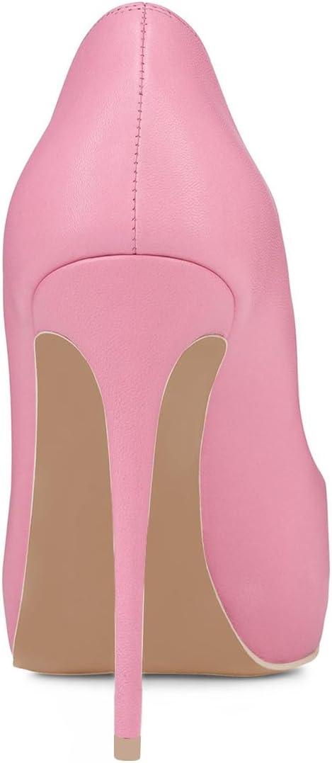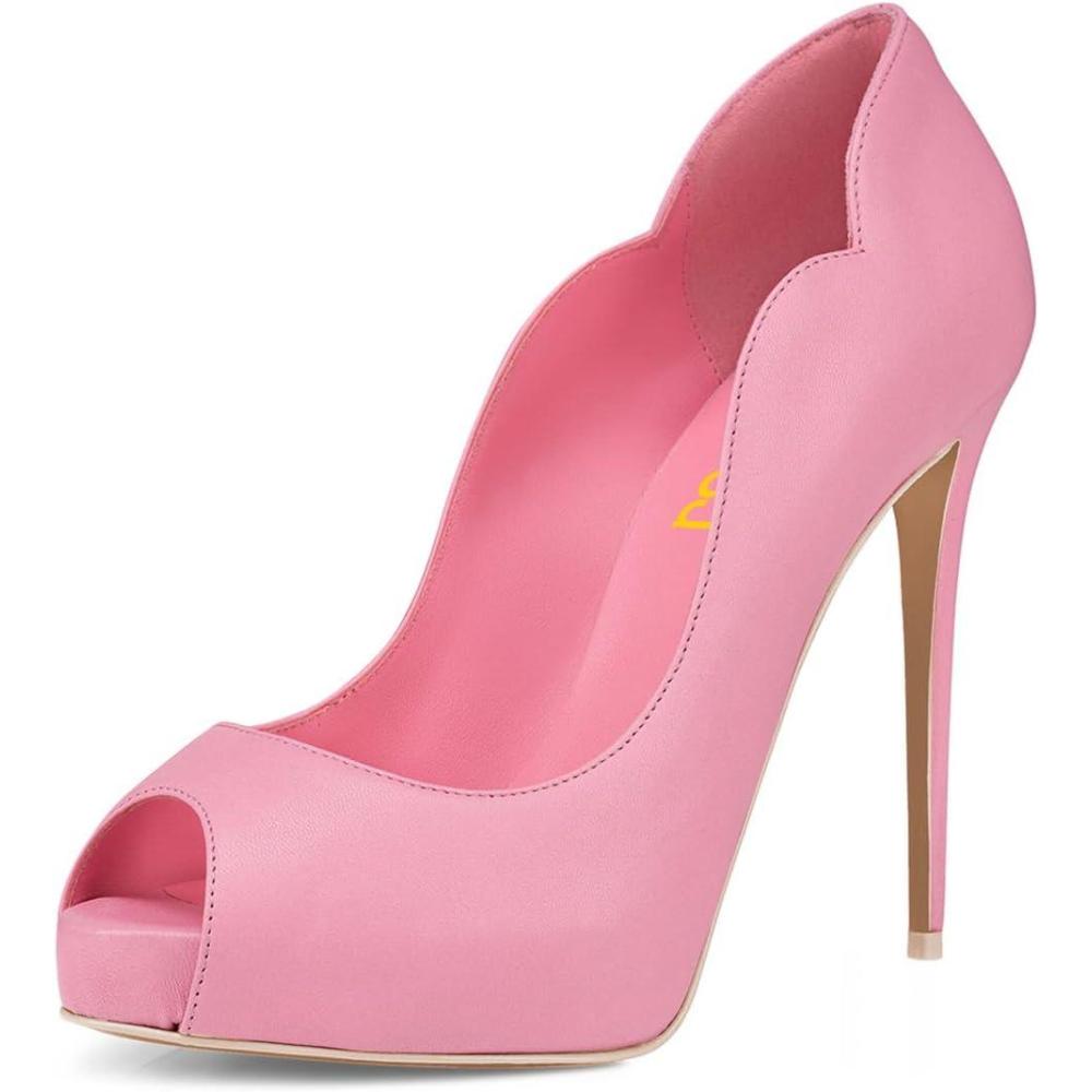 FSJ Women Classic Peep Toe Platform Pumps Sexy Stiletto High Heels Slip On Patent Leather Basic Pumps Wedding Party Dress Shoes Size 4-16 US(Pink Glossy Leather)