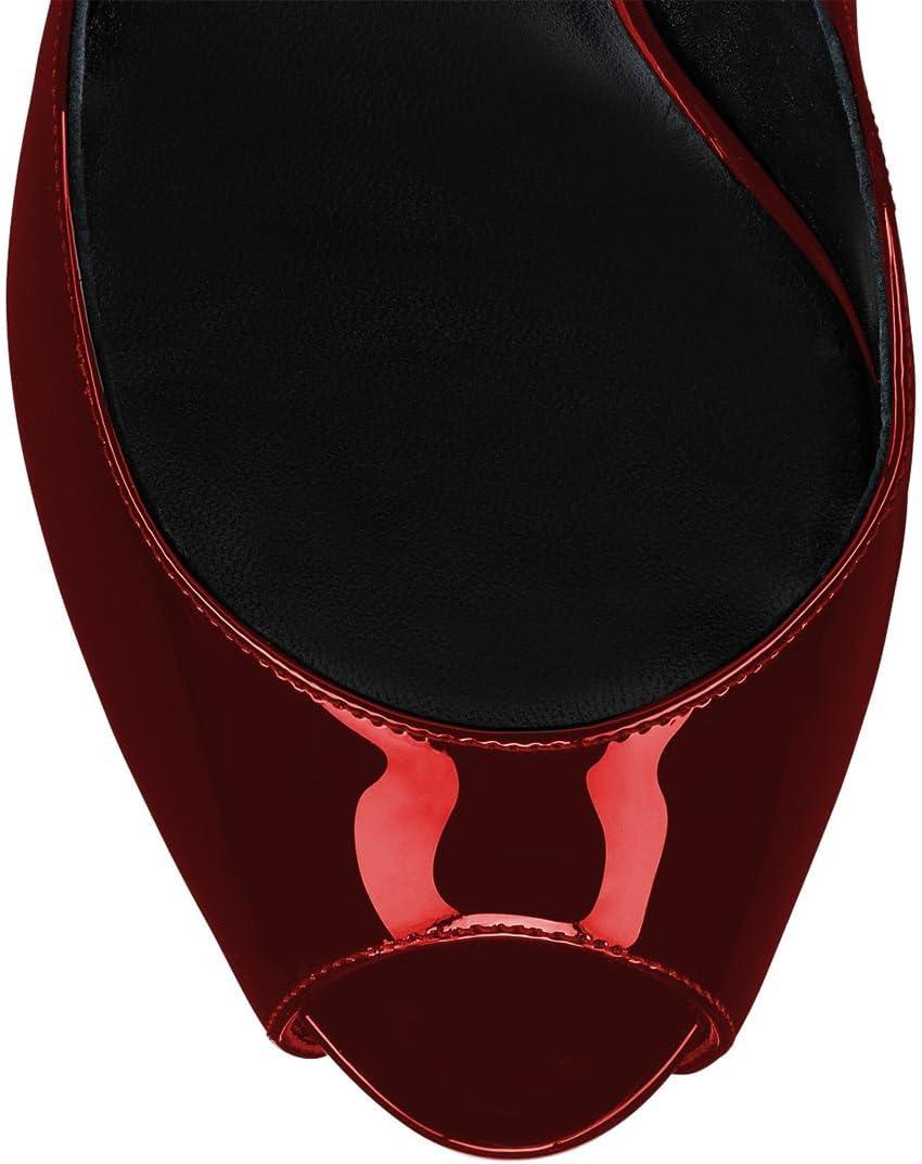 FSJ Women Classic Peep Toe Platform Pumps Sexy Stiletto High Heels Slip On Patent Leather Basic Pumps Wedding Party Dress Shoes Size 4-16 US(Red)