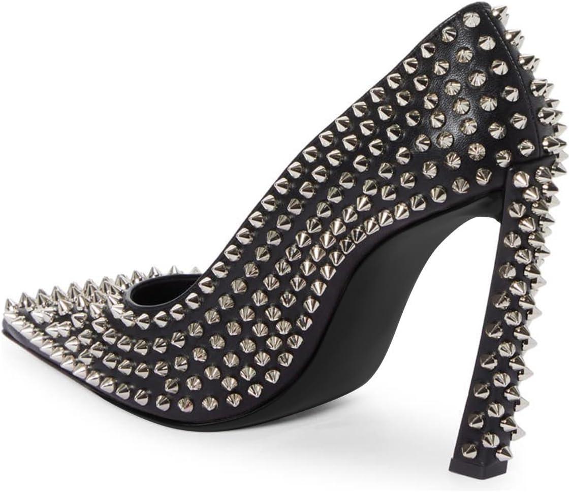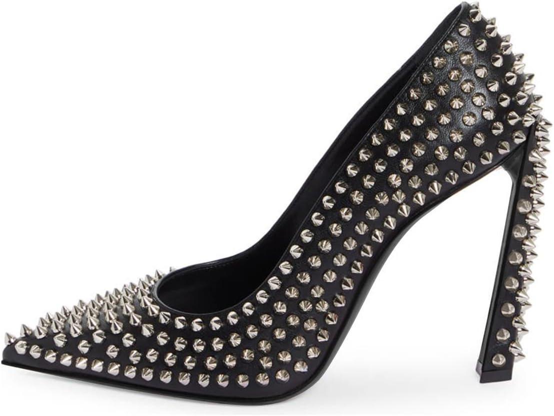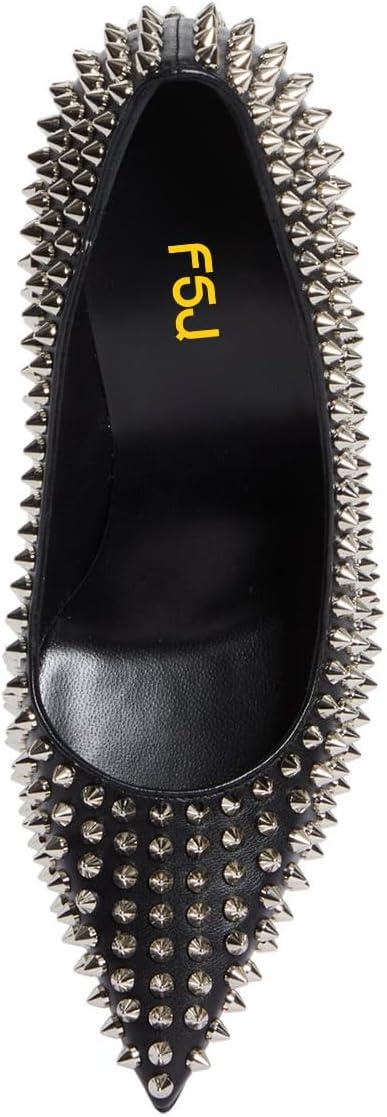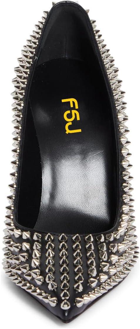 FSJ Women Classic Pumps Closed Pointed Toe Slim High Heel Fashion Studded Rivets Slip On Cocktail Party Prom Sexy Dress Shoes Size 4-16 US(Black)
