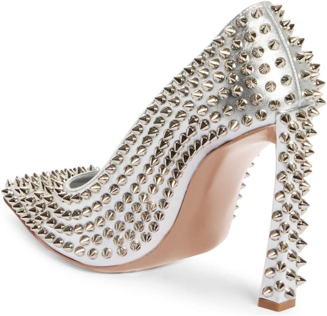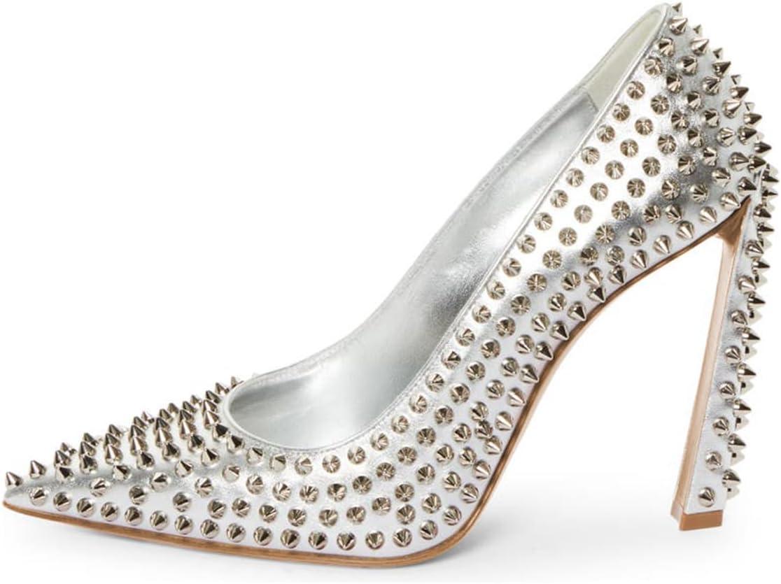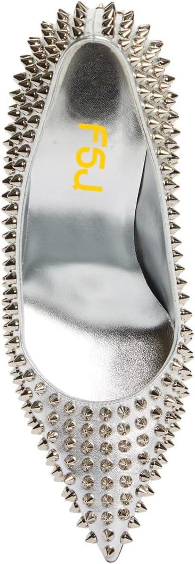 FSJ Women Classic Pumps Closed Pointed Toe Slim High Heel Fashion Studded Rivets Slip On Cocktail Party Prom Sexy Dress Shoes Size 4-16 US(Silver)
