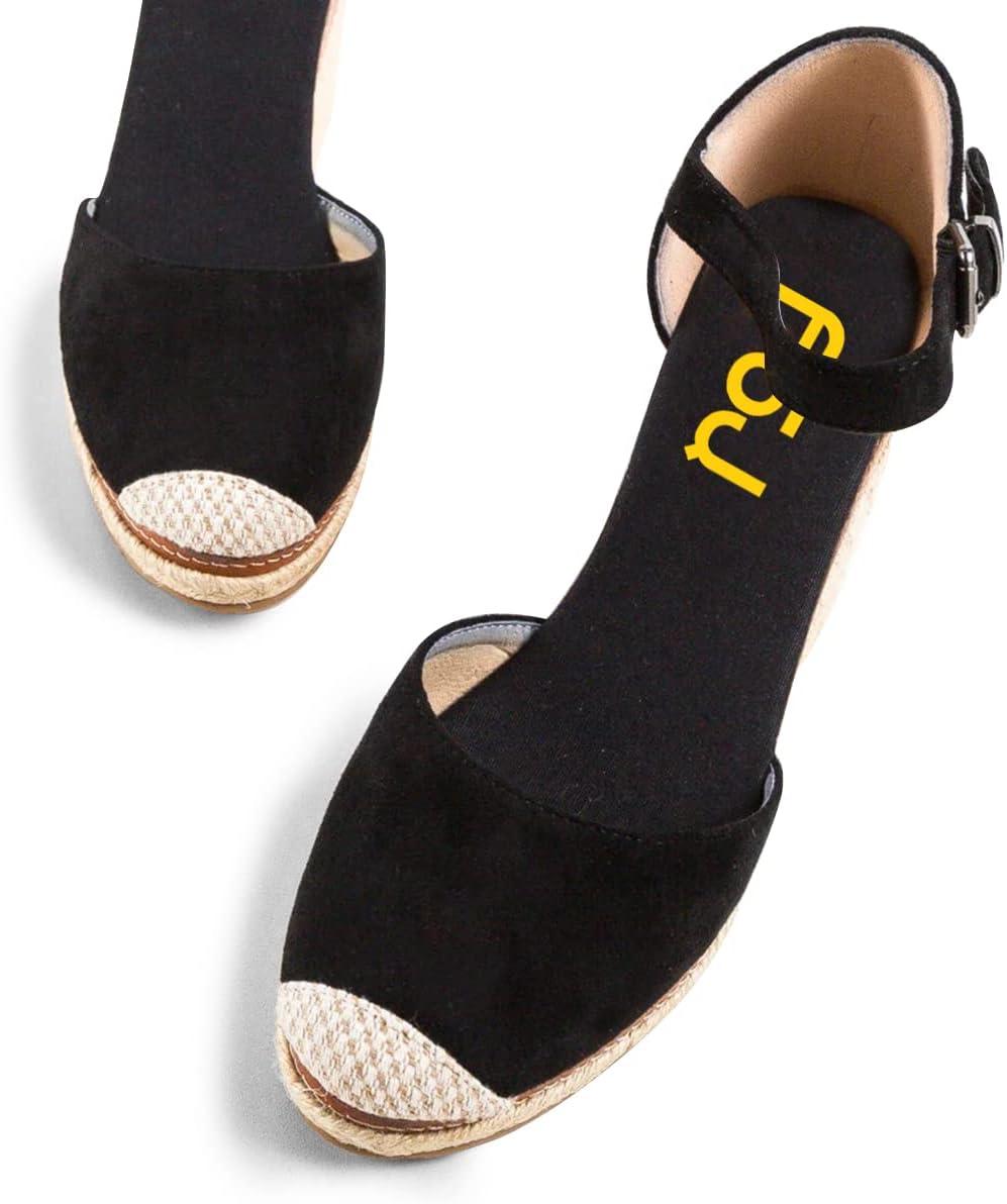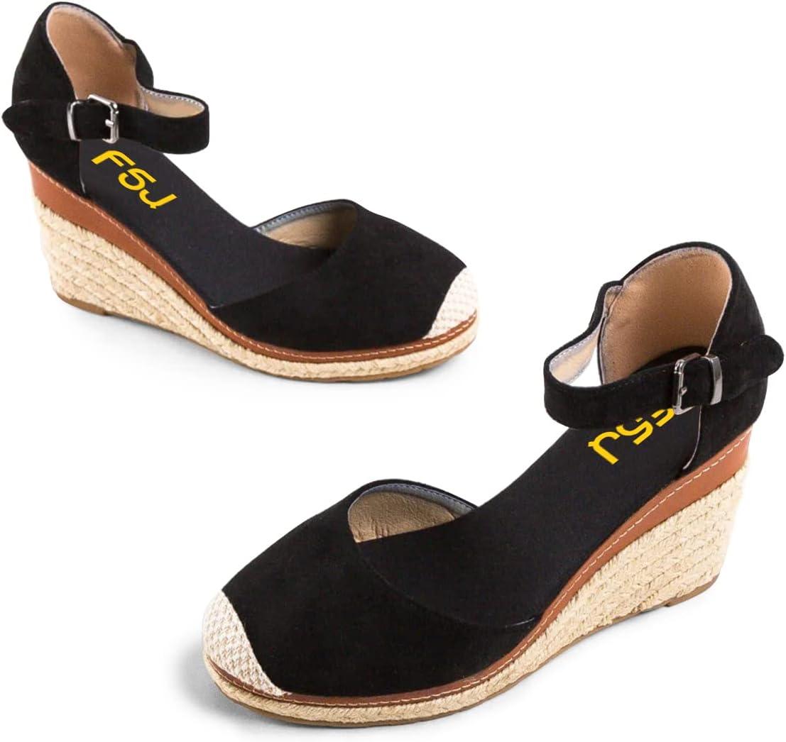 FSJ Women Closed Toe Espadrilles Dressy Wedge Sandal Ankle Strap Buckle High Heels Comfort Platform Sandals Shoes Size 4-15 US(Black)