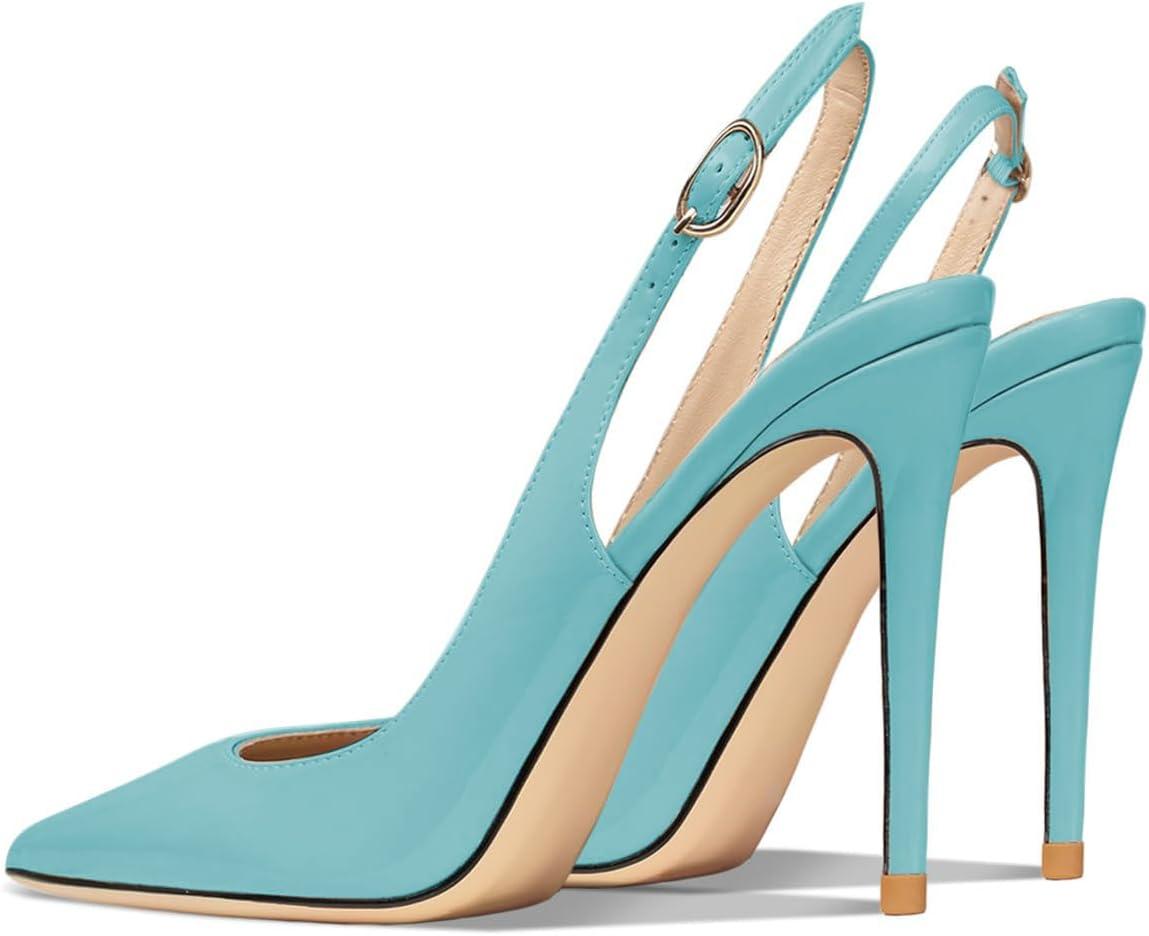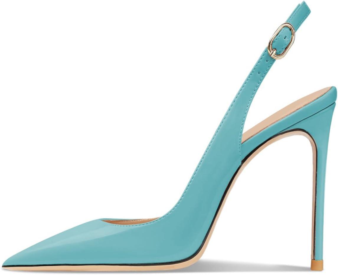 FSJ Women Closed Toe Pointy High Heel Pumps Sexy Slingback Heeled Sandals with Buckle Banquet Formal Event Dress Shoes Sizes 4-16 US(Turquoise)