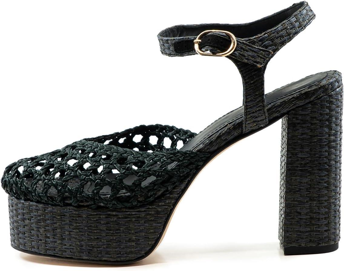 imageFSJ Women Closed Toe Woven Sandals Summer Platform Chunky High Heel Ankle Strap Chic Hollow Braided Breathable Wedding Shoes Size 416 USBlackGreen