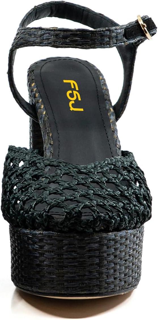 imageFSJ Women Closed Toe Woven Sandals Summer Platform Chunky High Heel Ankle Strap Chic Hollow Braided Breathable Wedding Shoes Size 416 USBlack