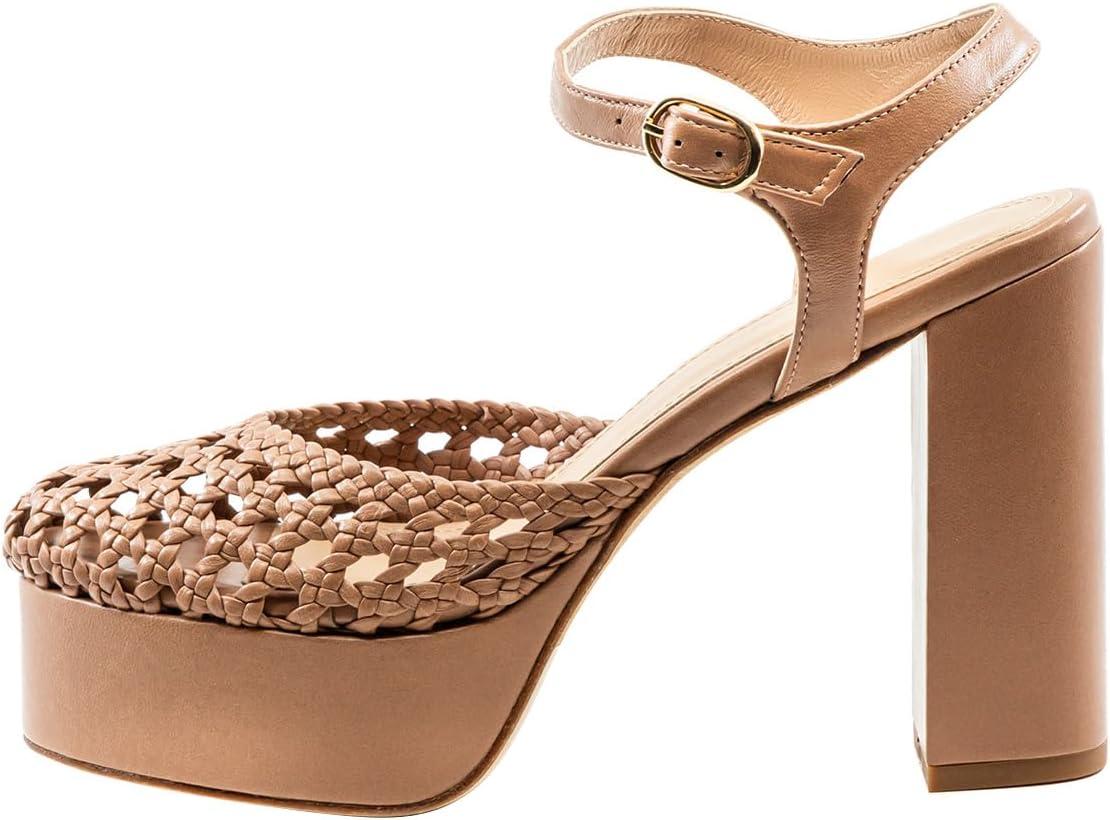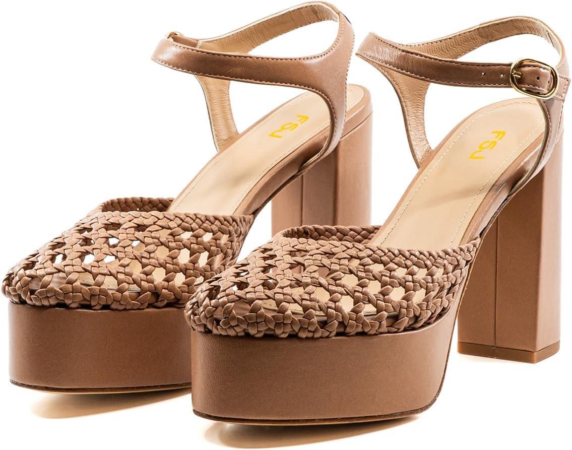 imageFSJ Women Closed Toe Woven Sandals Summer Platform Chunky High Heel Ankle Strap Chic Hollow Braided Breathable Wedding Shoes Size 416 USBrown