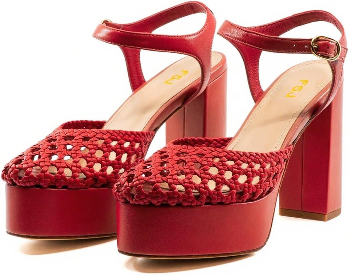 Be the first to review “FSJ Women Closed Toe Woven Sandals Summer Platform Chunky High Heel Ankle Strap Chic Hollow Braided Breathable Wedding Shoes Size 4-16 US(Red)”