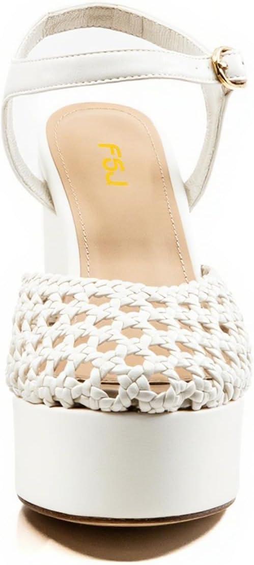 imageFSJ Women Closed Toe Woven Sandals Summer Platform Chunky High Heel Ankle Strap Chic Hollow Braided Breathable Wedding Shoes Size 416 USWhite