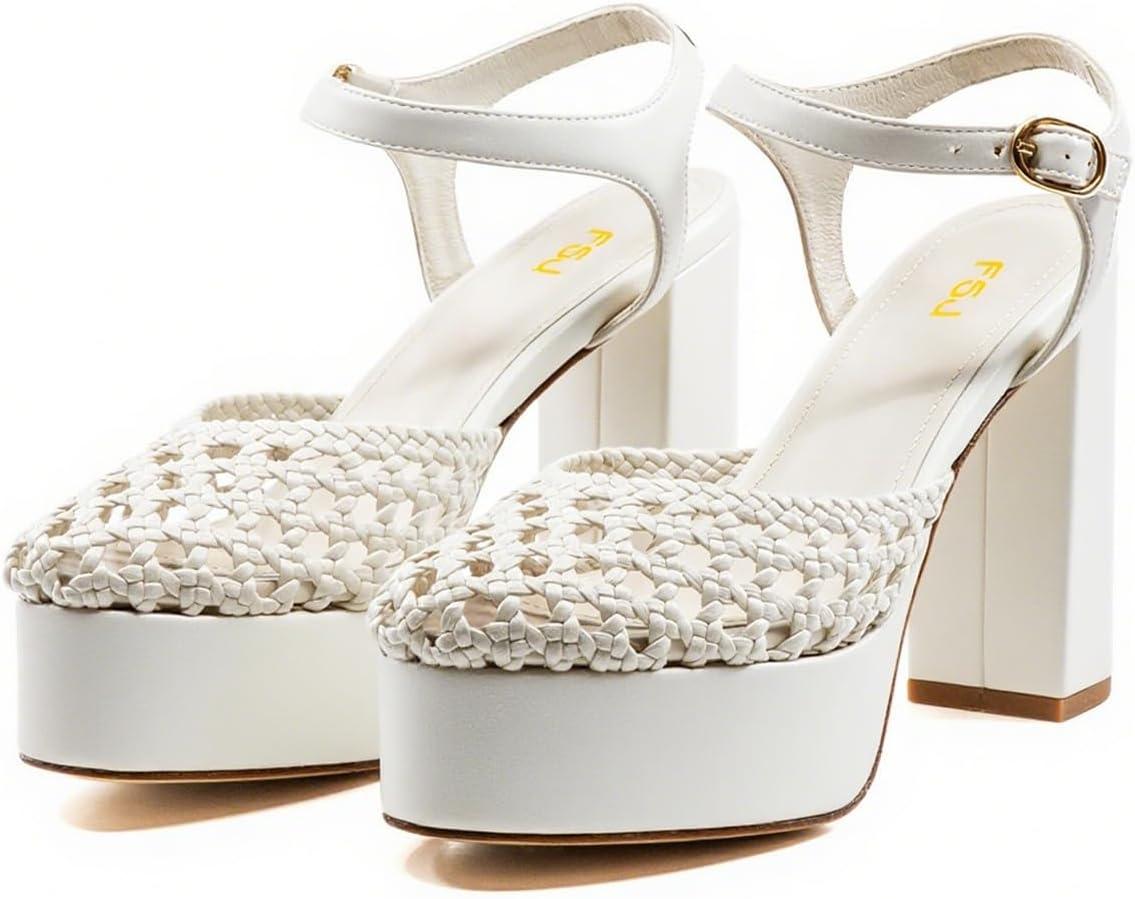 Be the first to review “FSJ Women Closed Toe Woven Sandals Summer Platform Chunky High Heel Ankle Strap Chic Hollow Braided Breathable Wedding Shoes Size 4-16 US(White)”