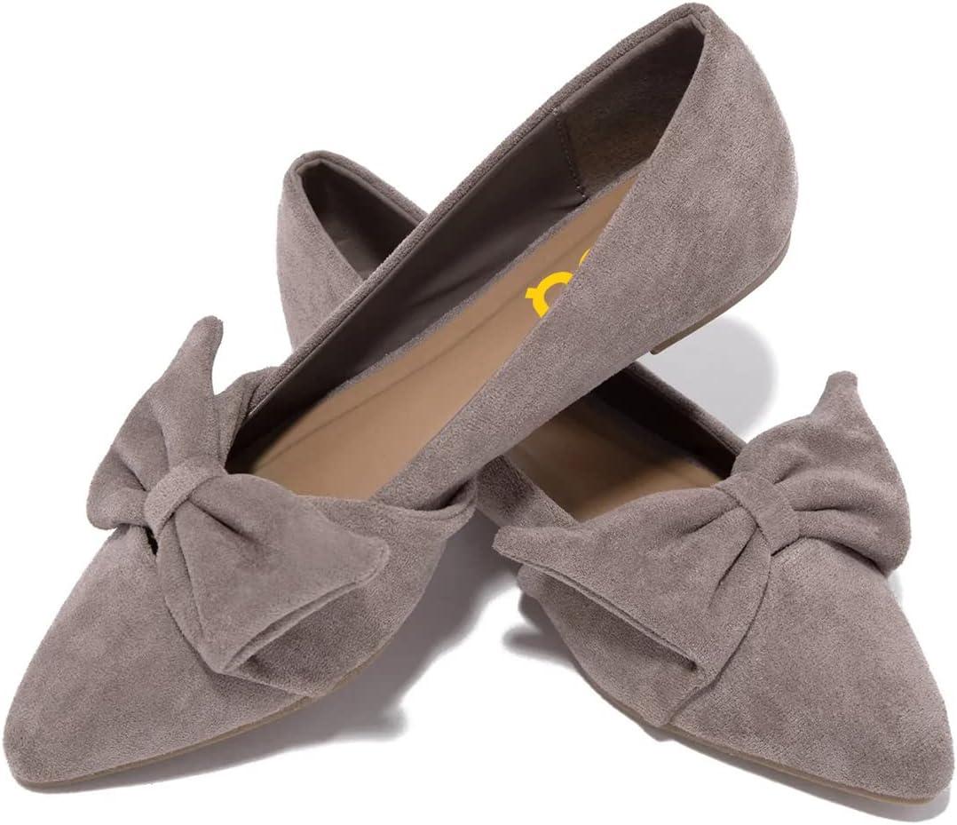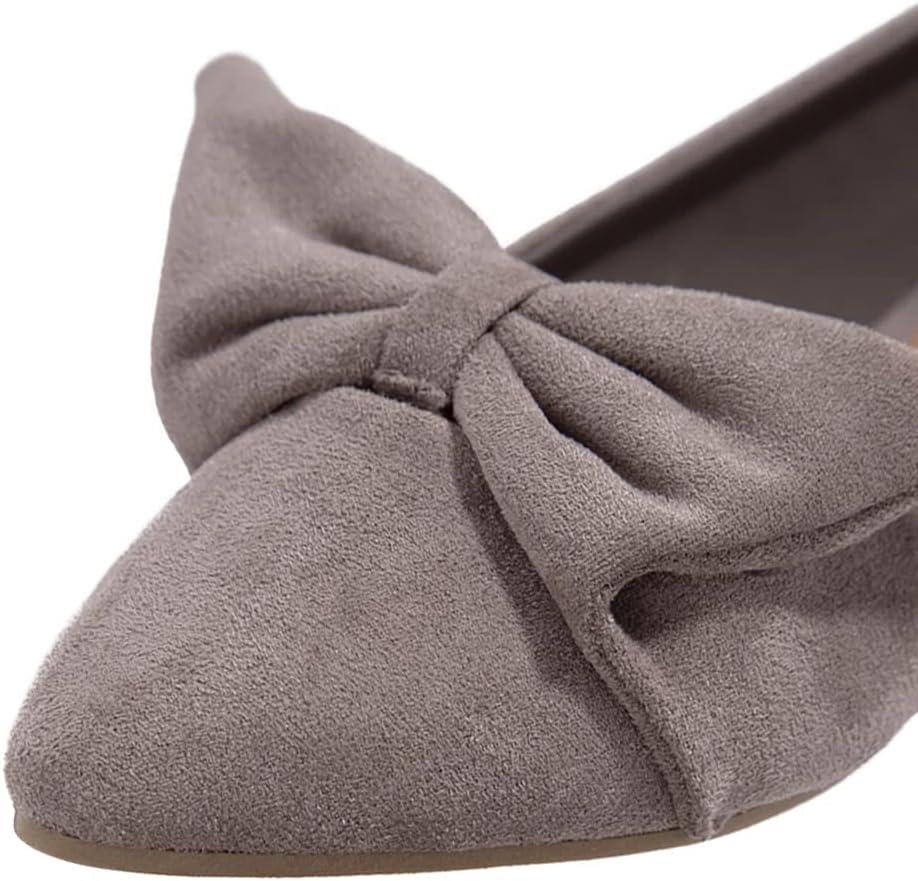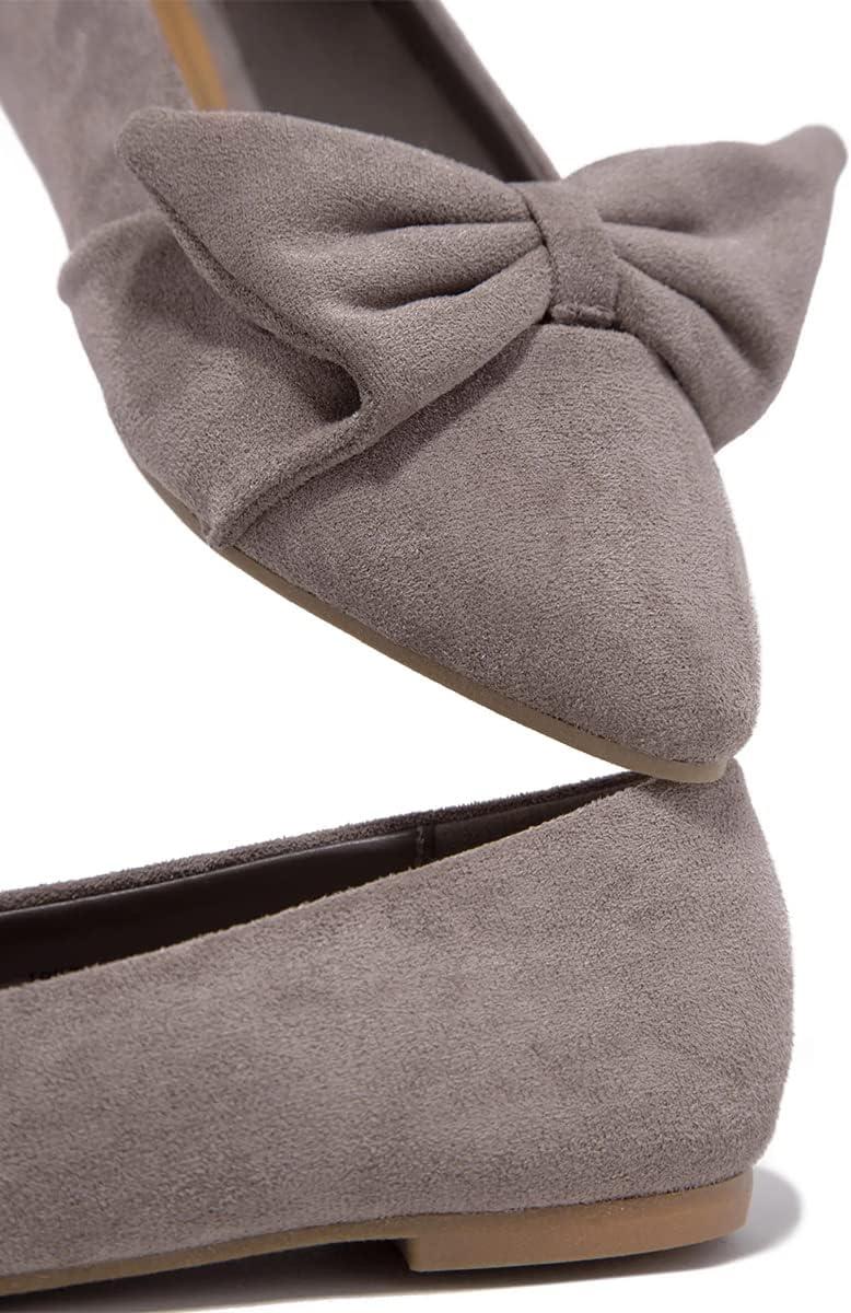FSJ Women Comfy Bowknot Pointed Toe Suede Flats Slip On Low Heels Pumps Graceful Casual Dress Daily Office Walking Shoes Size 4-16 US(Grayish Brown)