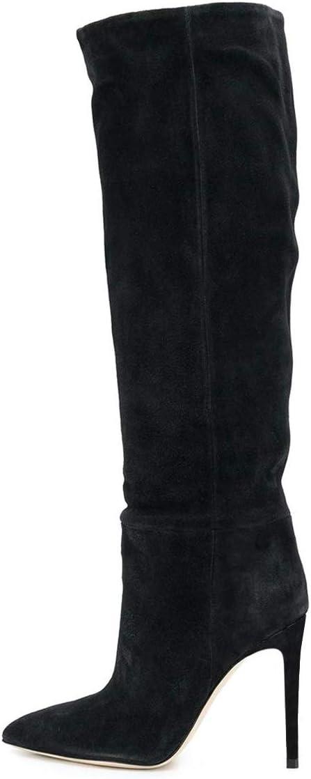 imageFSJ Women Comfy High Stiletto Heel Knee High Long Boots Closed Pointed Toe Pull On Classic Party Stretch Shoes Size 415 USBlack