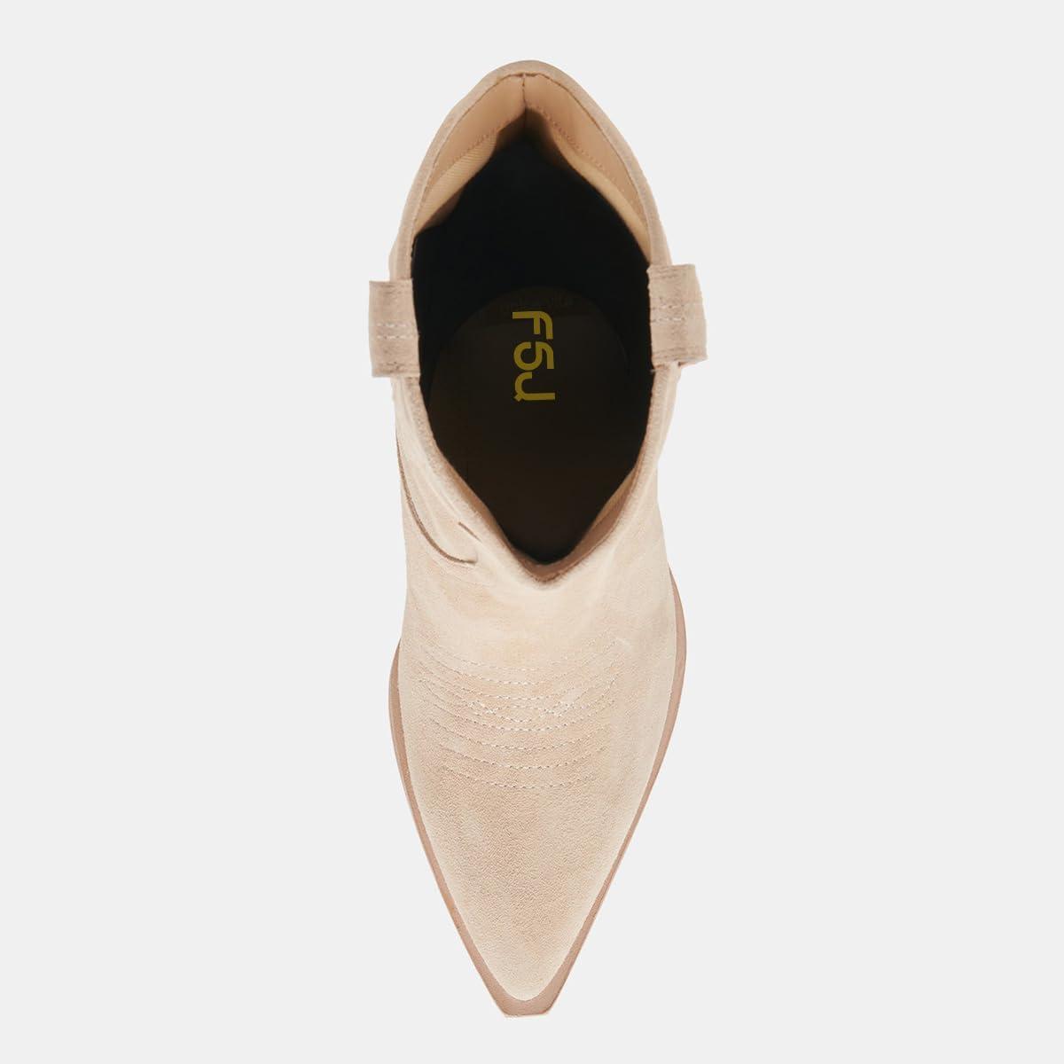 imageFSJ Women Cowboy Ankle Boots Pointed Toe Kitten Heel Western Pull On Low Heel Booties Embroidery Fall Winter Cowgirl Dress Shoes Size 416 USLight Khaki