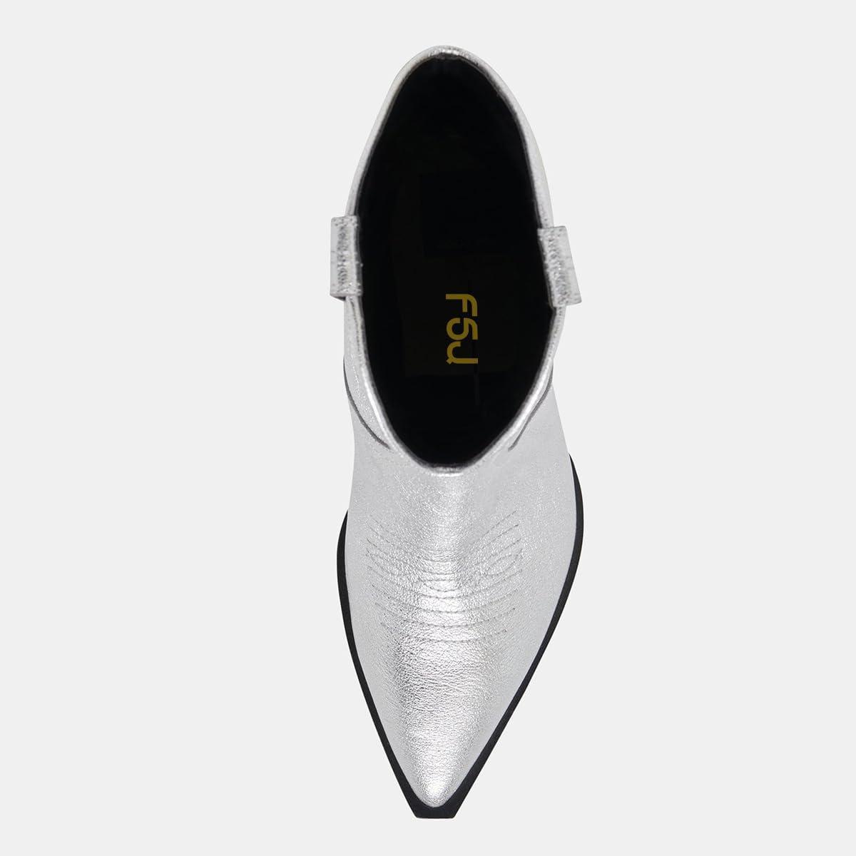 imageFSJ Women Cowboy Ankle Boots Pointed Toe Kitten Heel Western Pull On Low Heel Booties Embroidery Fall Winter Cowgirl Dress Shoes Size 416 USSilver