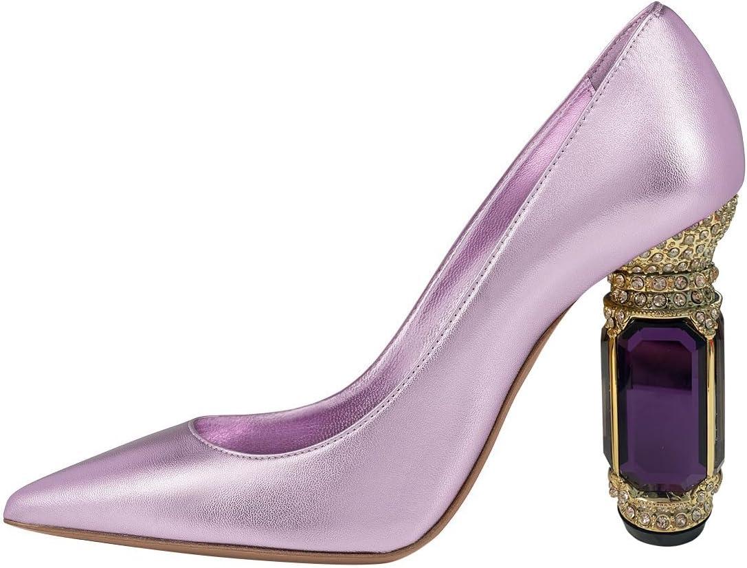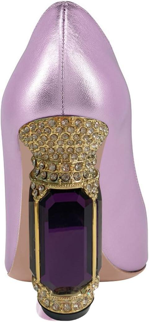 imageFSJ Women Crystal Chunky High Heel Pumps Closed Pointed Toe Sexy Block Heels with Rhinestones Slip On Bridal Party Wedding Dress Shoes Size 416 USPurple