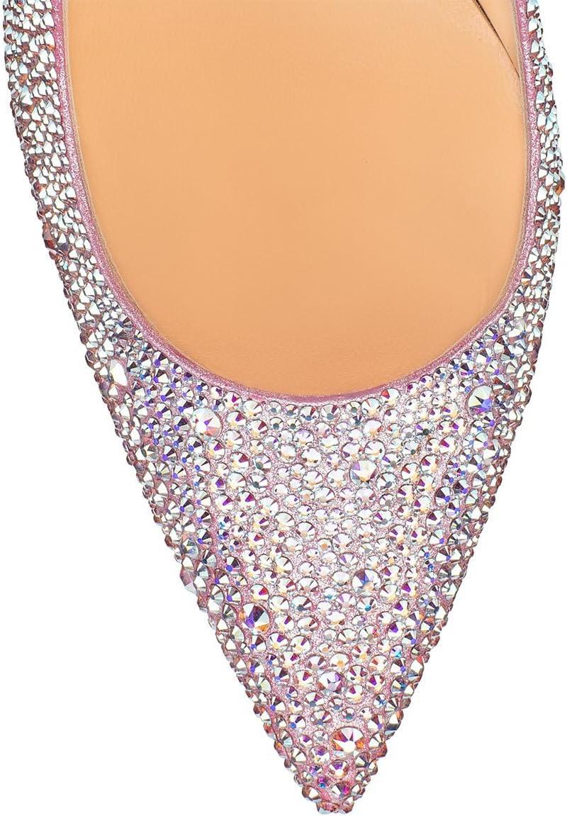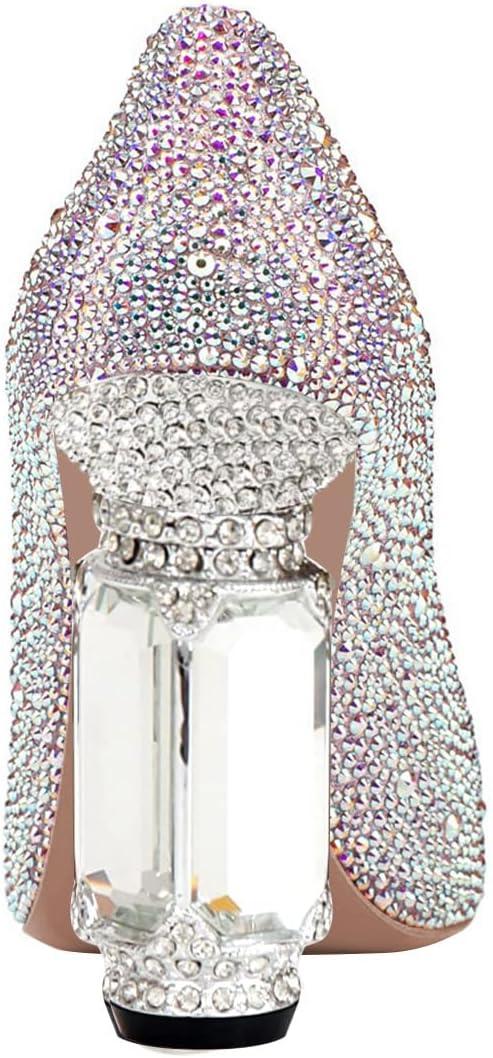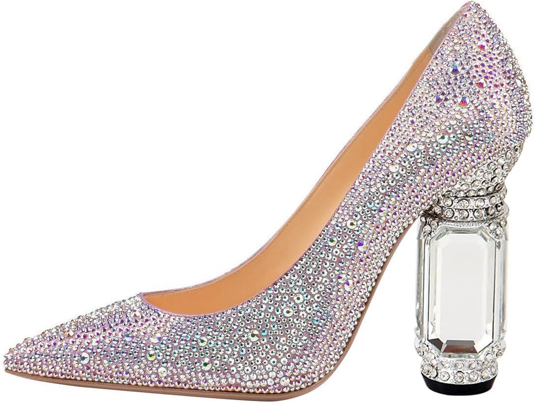 FSJ Women Crystal Chunky High Heel Pumps Closed Pointed Toe Sexy Block Heels with Rhinestones Slip On Bridal Party Wedding Dress Shoes Size 4-16 US(Rhinestones)