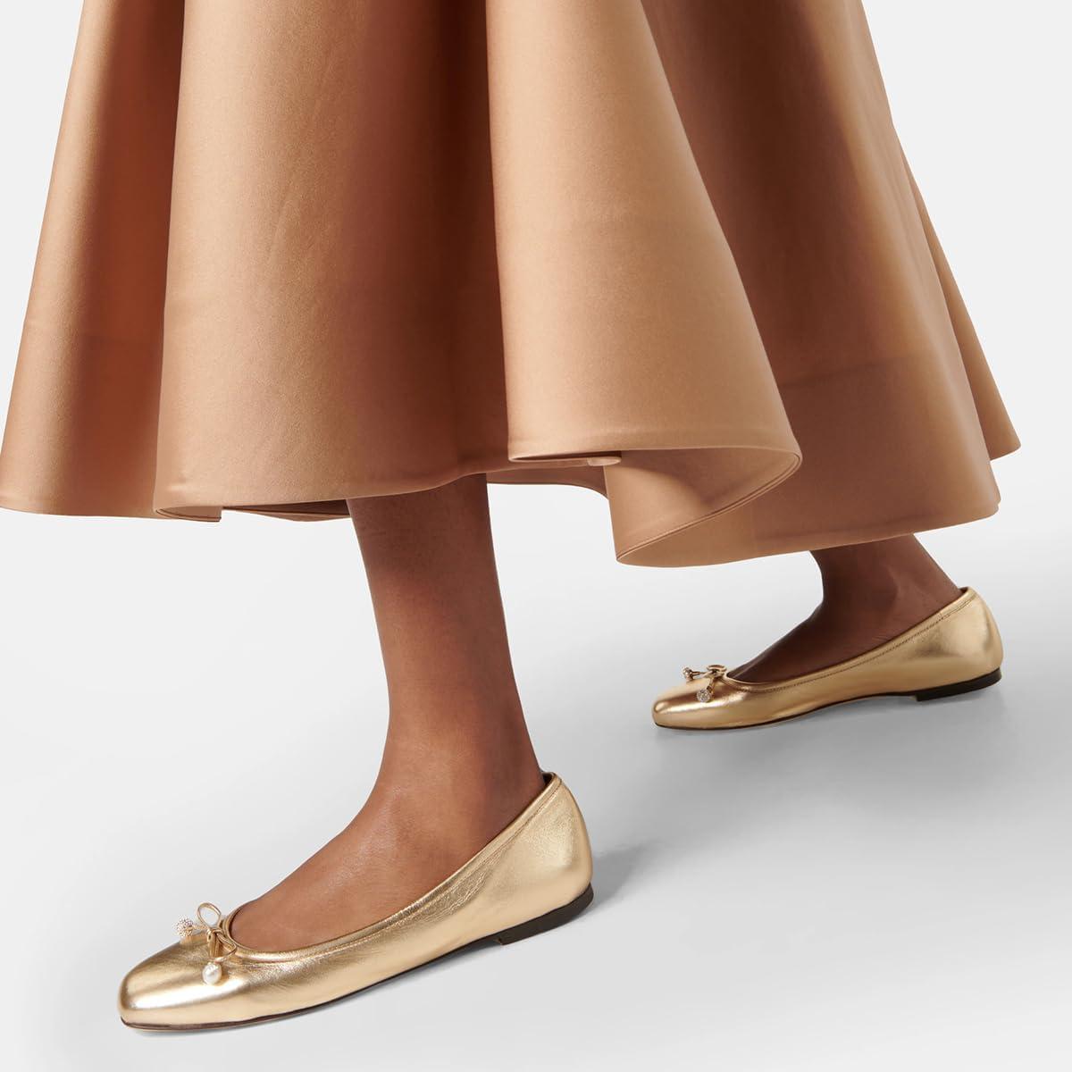 FSJ Women Cute Ballet Flats with Bowtie Round Toe Girls Comfort Slip On Casual Office Work Flats Dress Shoes Size 4-15 US(Gold)