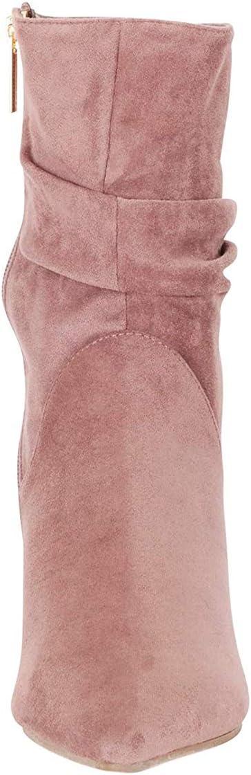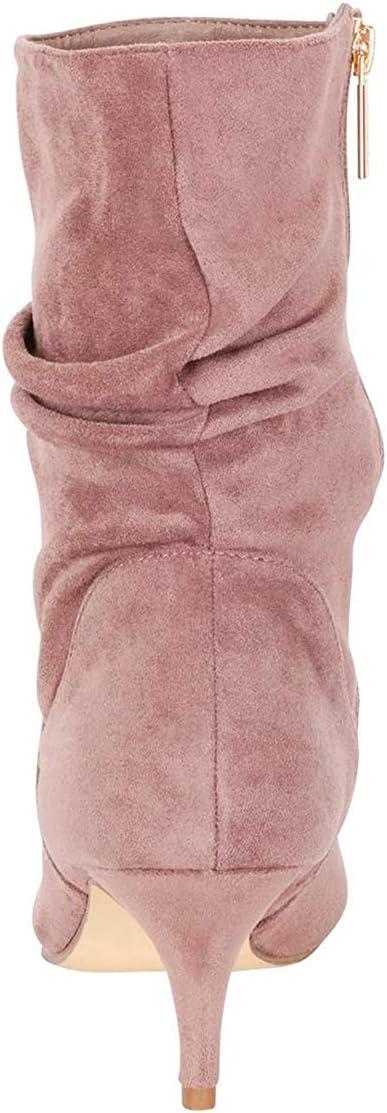 imageFSJ Women Elegant Slouch Ankle Boots Pointed Closed Toe Kitten Low Heels Stacked Short Booties Leather Side Zipper Ladies Office Party Prom Fall Winter Dress Shoes Size 415 USPink
