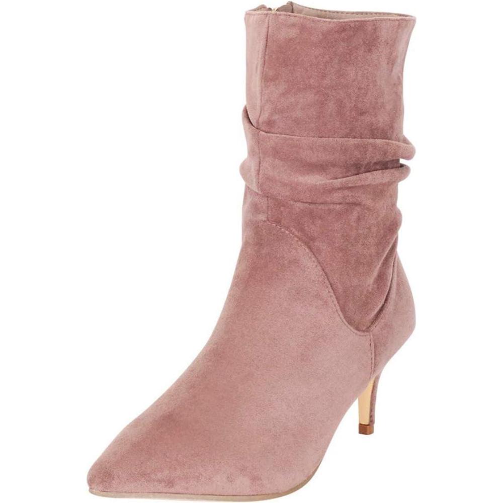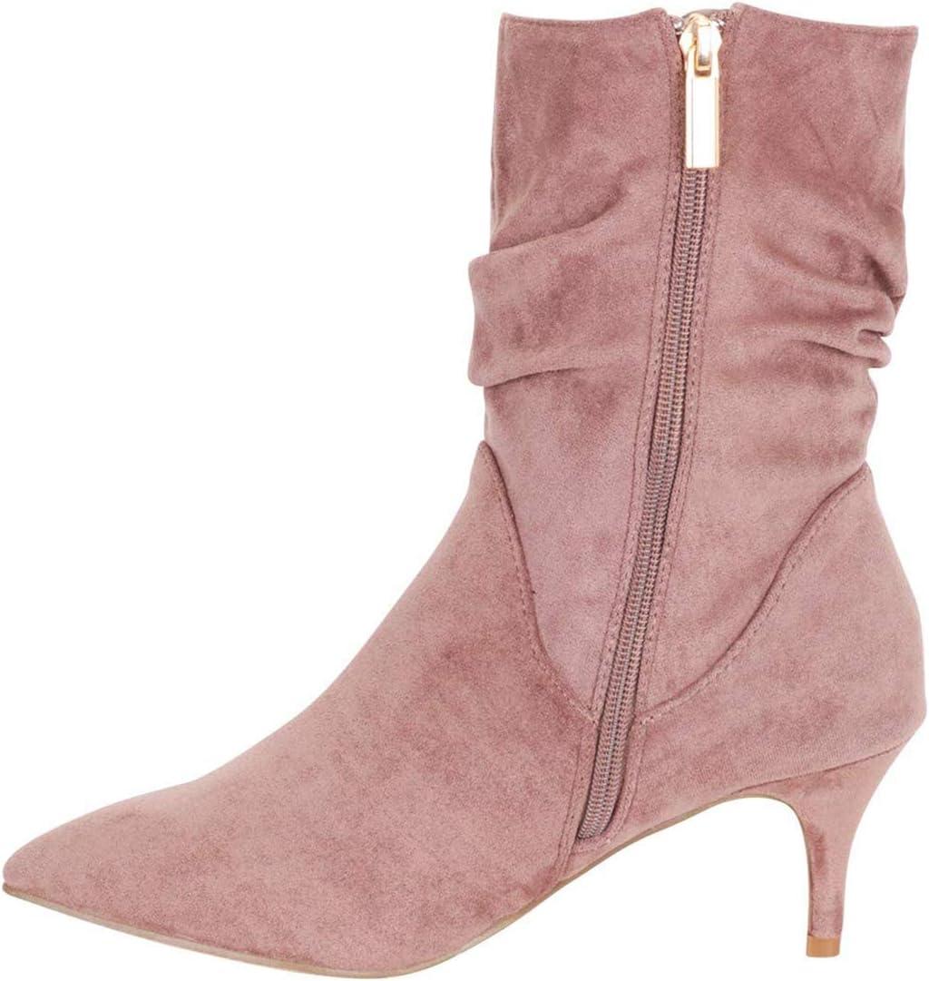 FSJ Women Elegant Slouch Ankle Boots Pointed Closed Toe Kitten Low Heels Stacked Short Booties Leather Side Zipper Ladies Office Party Prom Fall Winter Dress Shoes Size 4-15 US(Pink)