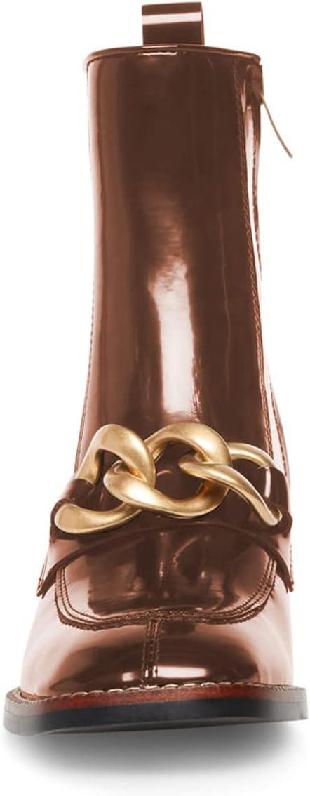 imageFSJ Women Fashion Chain Square Toe Block Mid Heel Ankle Boots Classic Side Zipper Casual Walking Ladies Shoes Size 415 USBrown
