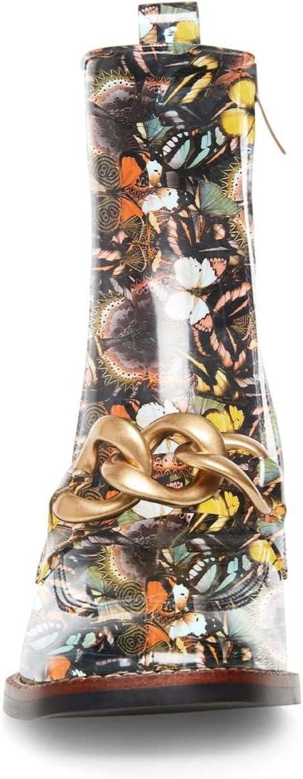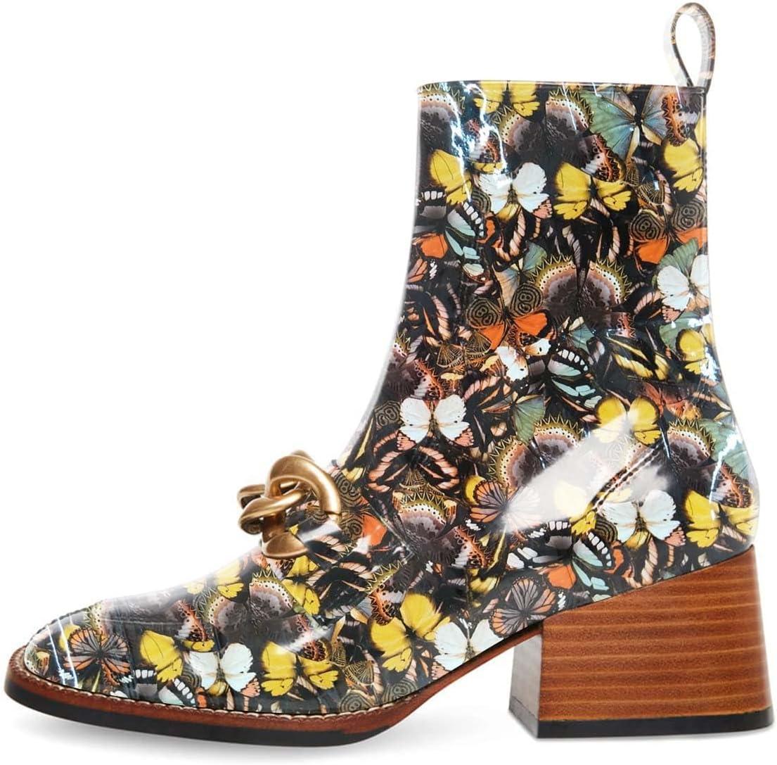 FSJ Women Fashion Chain Square Toe Block Mid Heel Ankle Boots Classic Side Zipper Casual Walking Ladies Shoes Size 4-15 US(Butterfly)