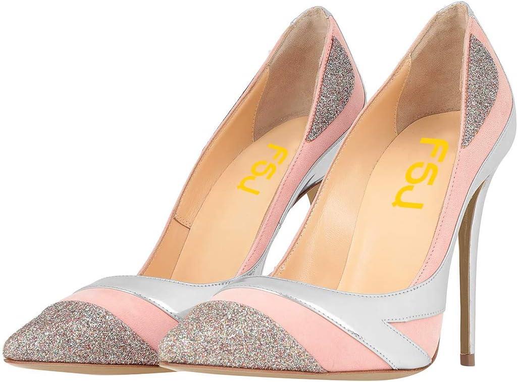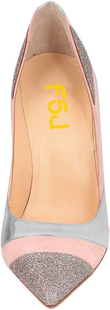 imageFSJ Women Fashion Patchwork Pumps Stiletto High Heels Sexy Fashion Pointed Toe Pump Comfort Slip On Evening Party Bridal Dress Shoes Size 415 USSliver