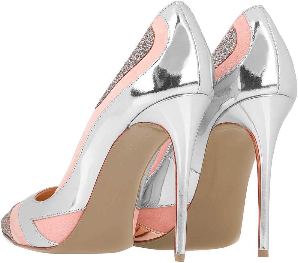 FSJ Women Fashion Patchwork Pumps Stiletto High Heels Sexy Fashion Pointed Toe Pump Comfort Slip On Evening Party Bridal Dress Shoes Size 4-15 US(Sliver)