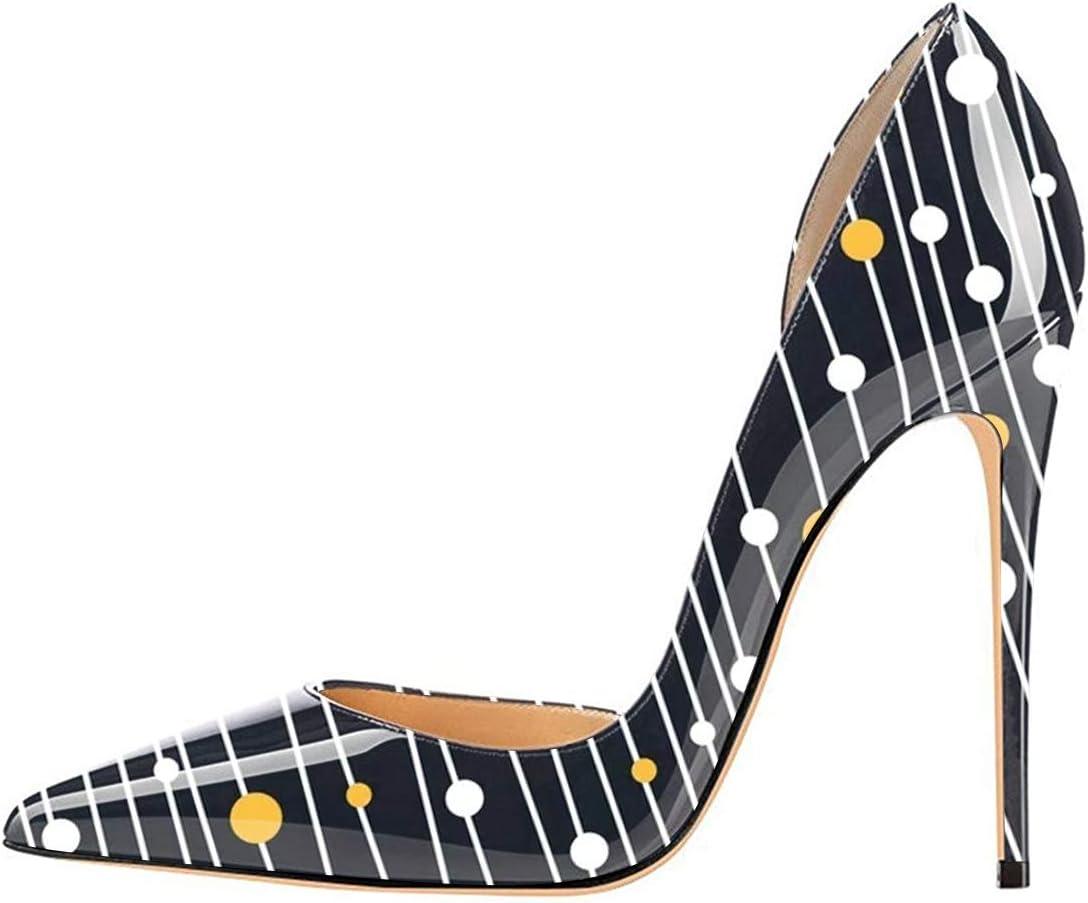 FSJ Women Formal Dress Shoes Pointed Toe D’Orsay High Heels Sexy Stiletto Versatile Office Wear Pumps Size 4-15 US(Dotted Line)